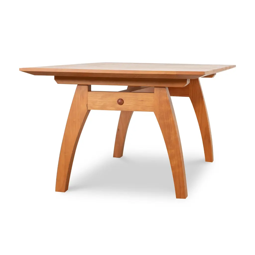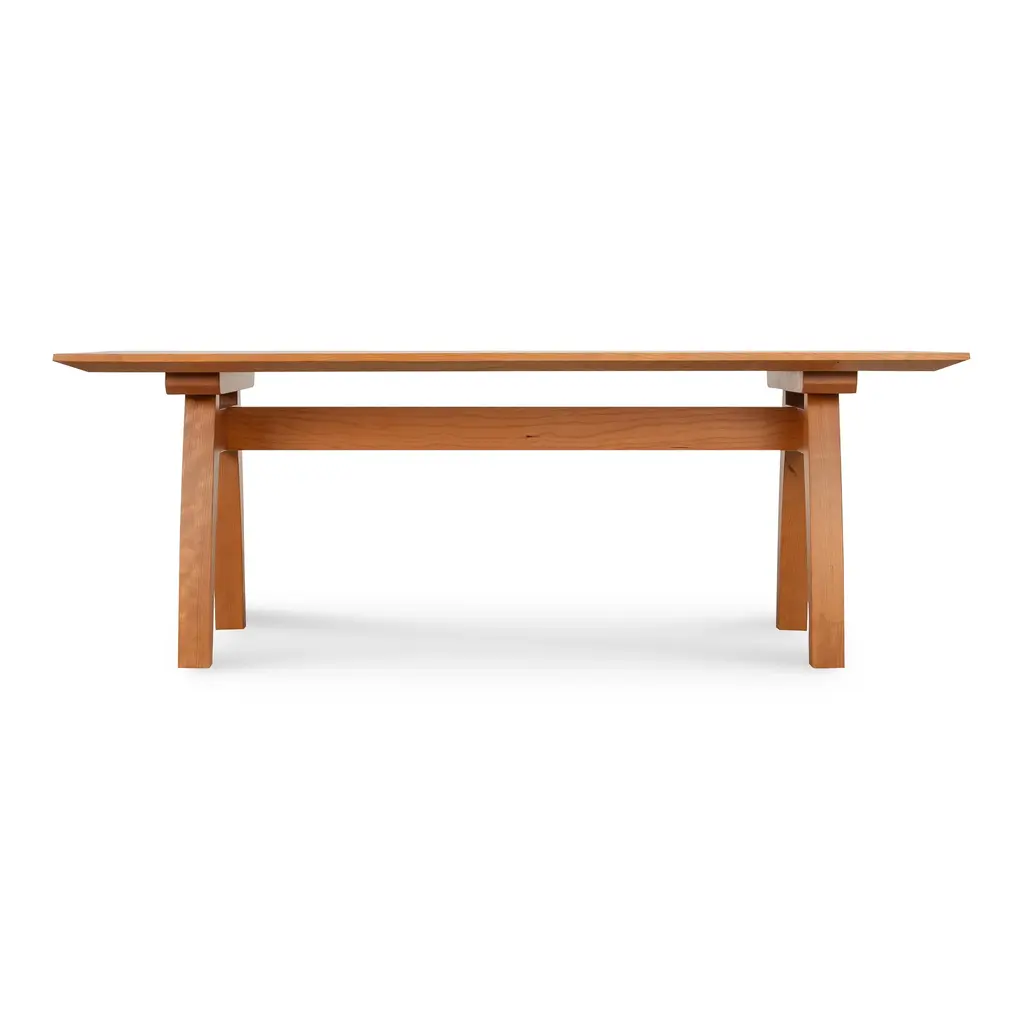 Delivery Information: This furniture piece is available for pick-up from our Southern Vermont showroom or delivery throughout New England, New Jersey, New York City and select areas of eastern New York State. With its graceful curves, this high-end Vermont Modern Trestle Coffee Table features a uniquely modern, contemporary style. Handmade by Vermont furniture makers. Create a statement piece for your living room or foyer! One (1) 24" x 48" table available in natural cherry Finish: Lacquer Please note: Showroom items are excluded from our lifetime guarantee, are subject to wear and tear and may show signs of use as a display model. Additional details, images and viewing options are available upon request.