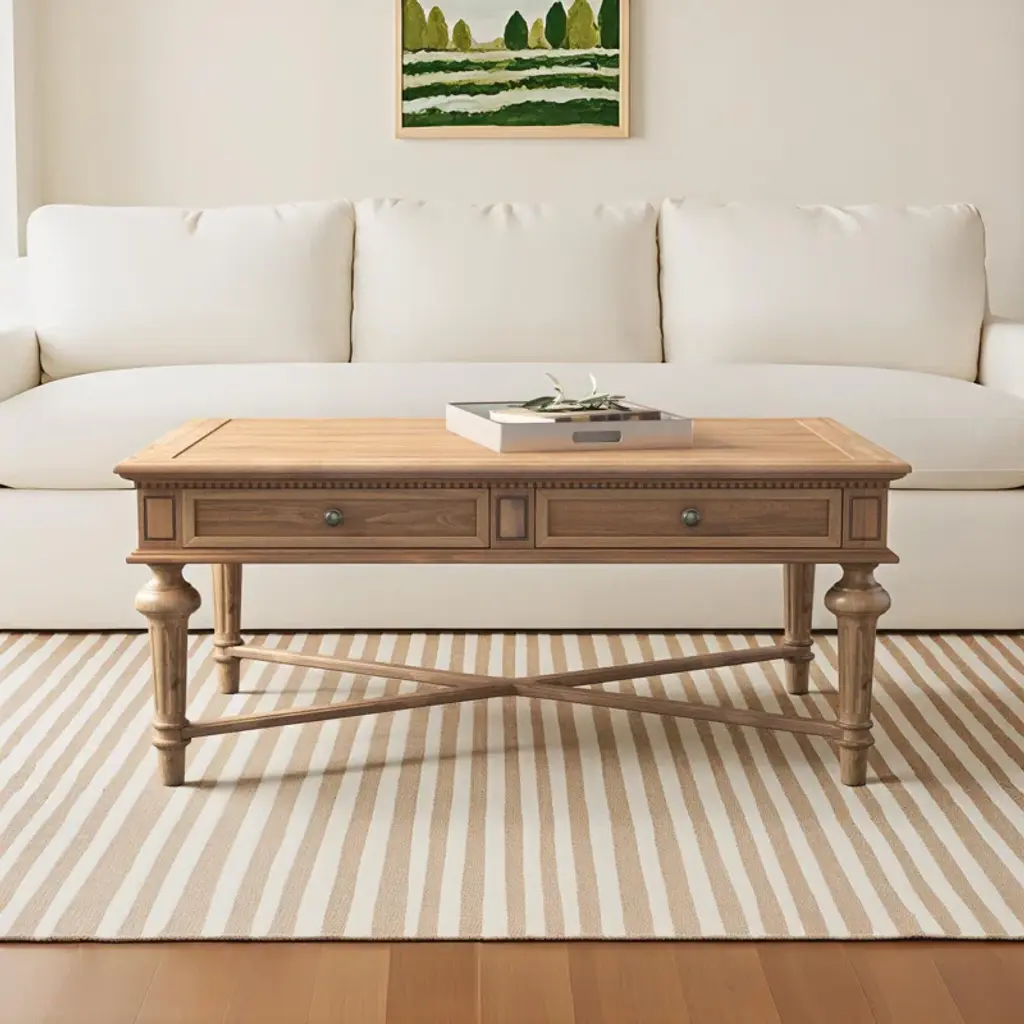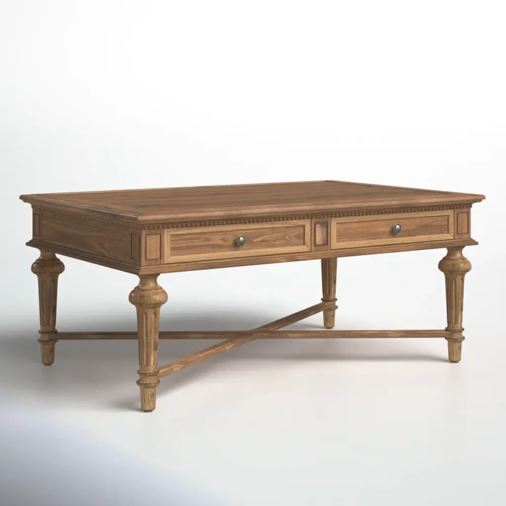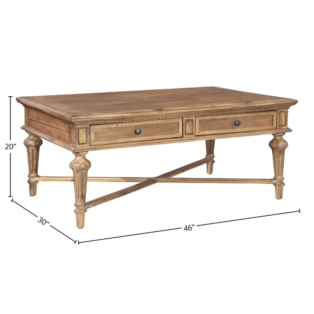Upgrade your living space with this versatile coffee table, designed to make your home feel more inviting. Crafted from solid acacia wood, it showcases a rectangular top with a rich Wellington Hall finish, highlighting the natural wood grain color variation. This table offers ample storage, featuring two drawers with wood slide glides for easy access to your essentials. Plus, its knobs allow for height adjustment, so you can customize it to fit your needs. Personalization or monogramming options are available, making it a truly special piece for your home.