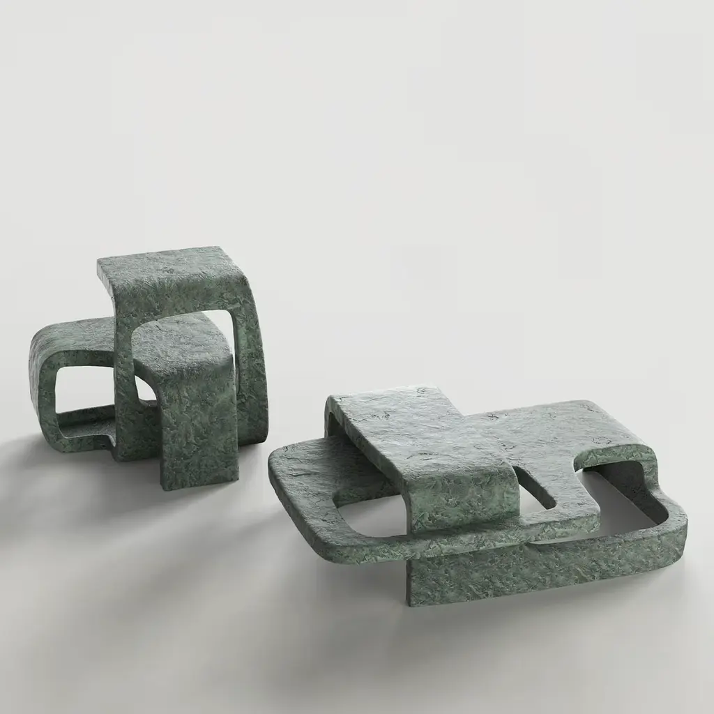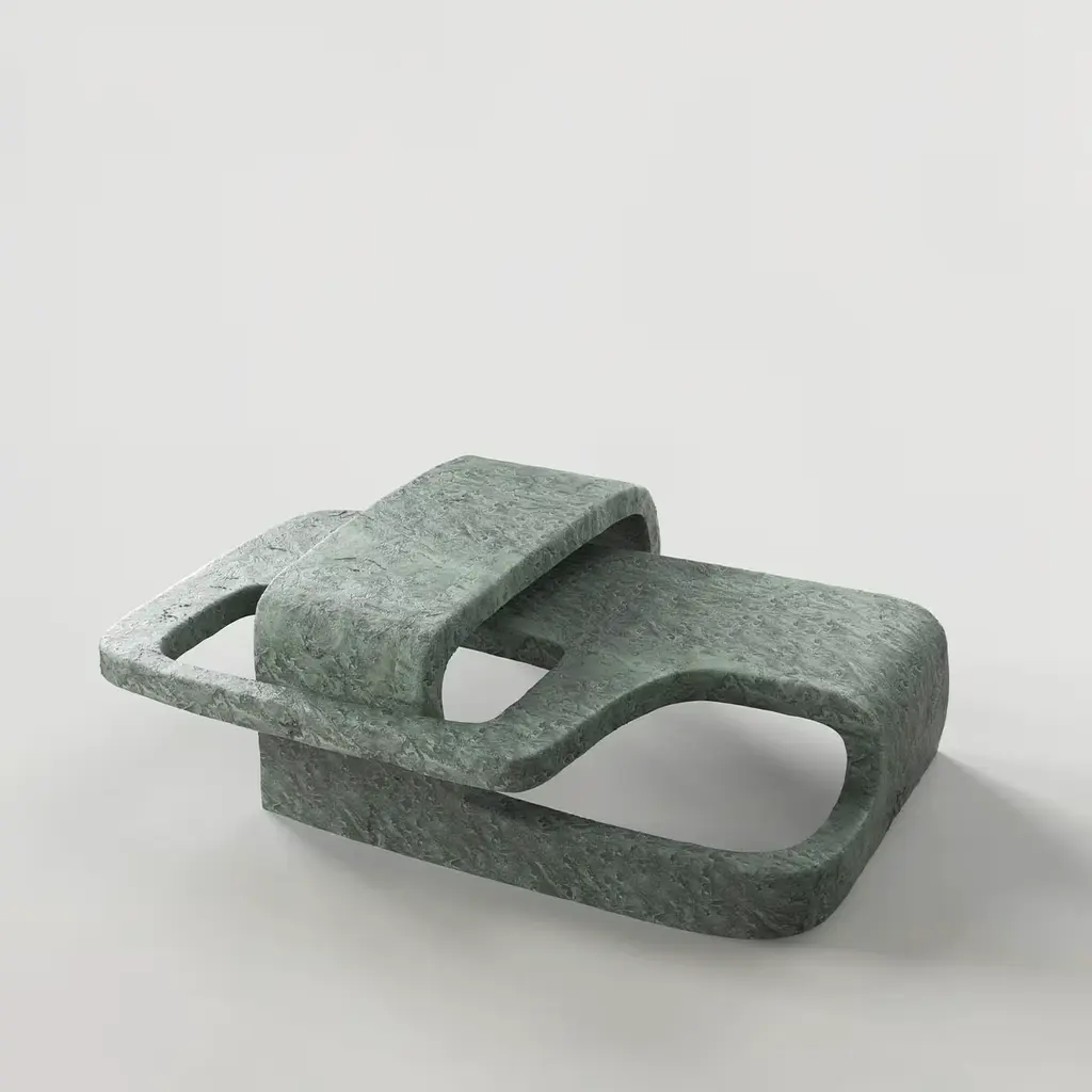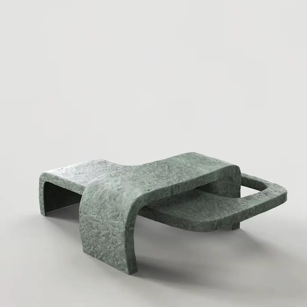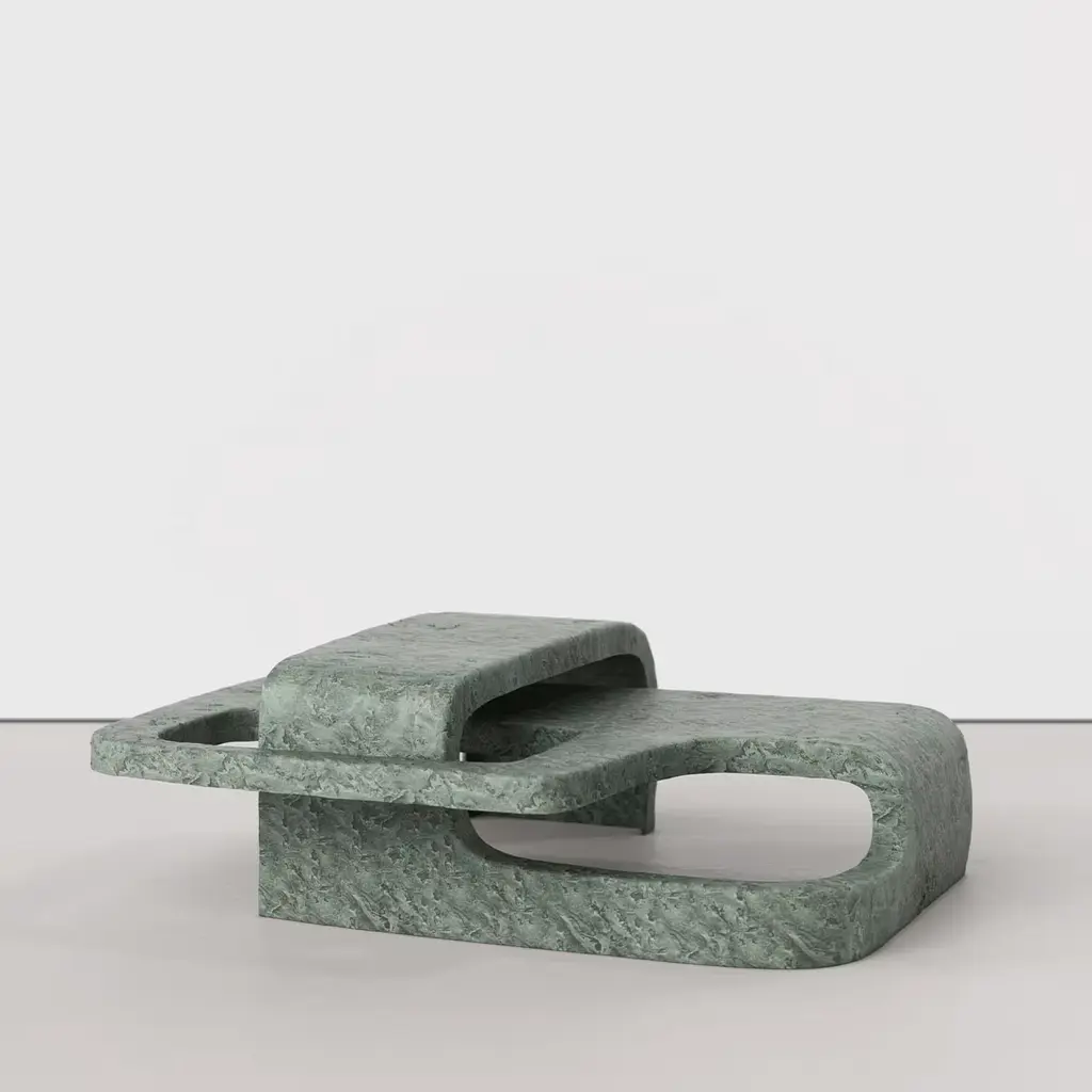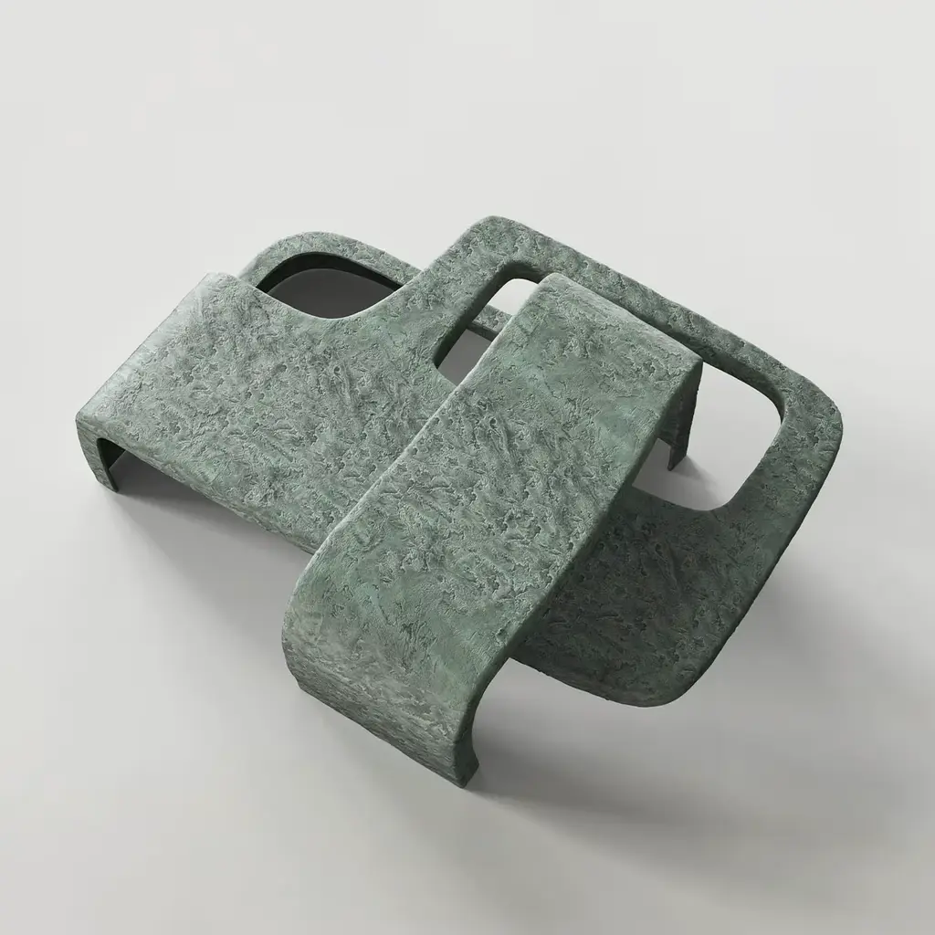 Explore the Vertigo low table, crafted in cast bronze using the lost wax technique. The asymmetrical design intrigues the eye, seamlessly blending volumes and voids. Customize with various patinas for unique colors and finishes. Limited to 15+3 pieces, with cast aluminum option available upon request. Please ask the Concierge for other informations.