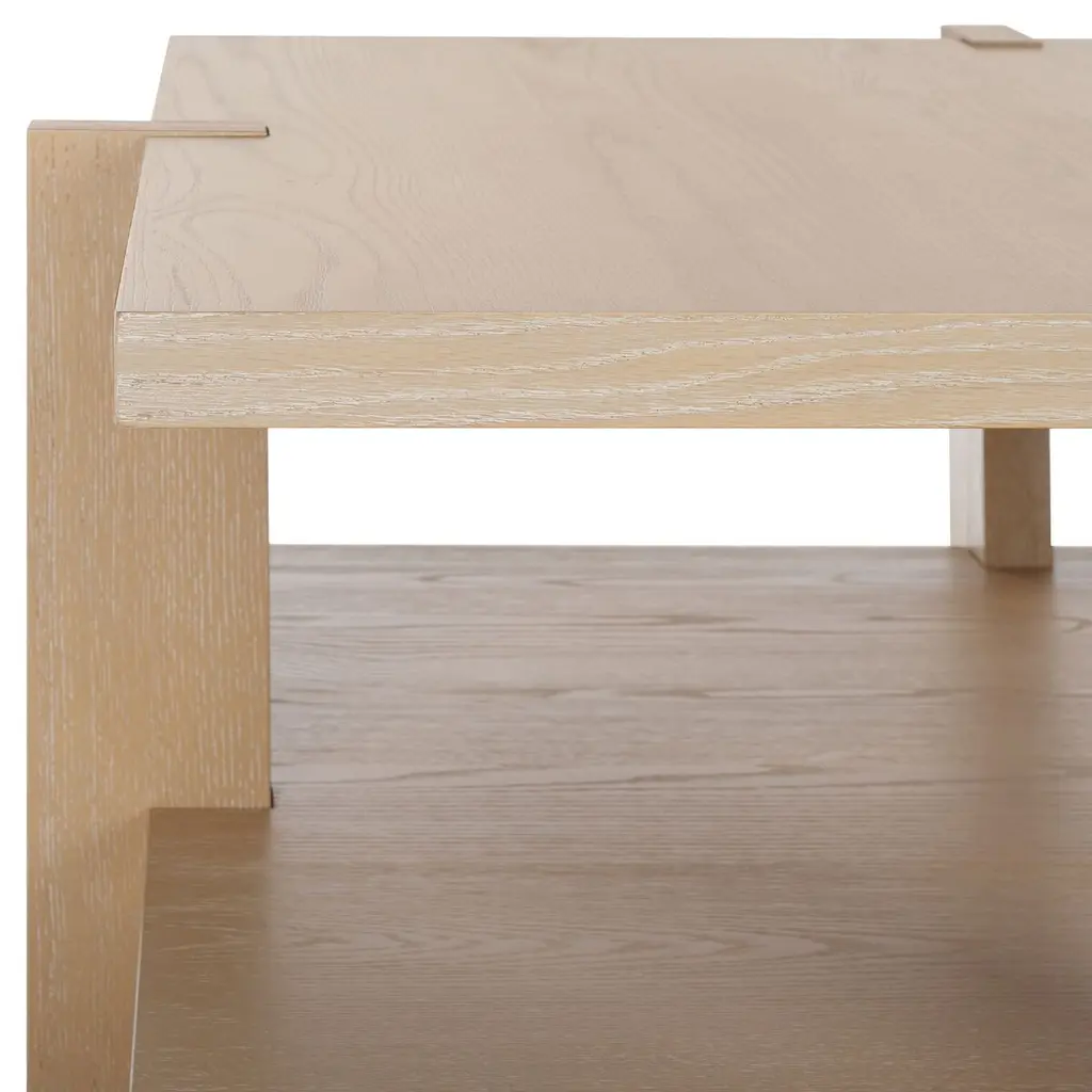 Give a sleek and sophisticated update to your home with our Vespera coffee table. Combining a clean-lined profile with elevated details, our coffee table brings effortless charm to any room. The table beautifully exposes its joinery detail to attain a bold architectural appeal. Its clean and crisp silhouette highlights the organic grains of the Oak wood veneer. Featuring a lower shelf, our coffee table provides ample space for both display and storage. It remains a versatile and sophisticated addition to a living space, bedroom, or home office.