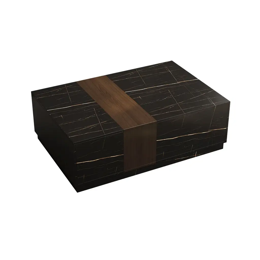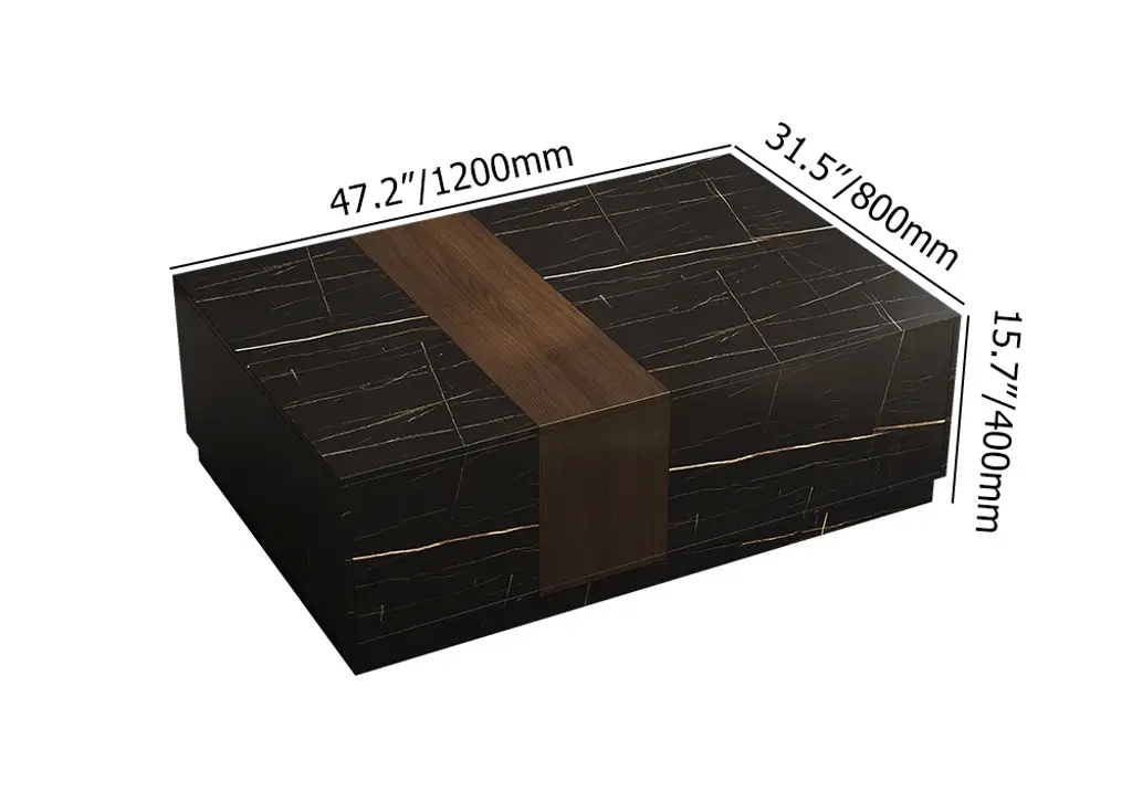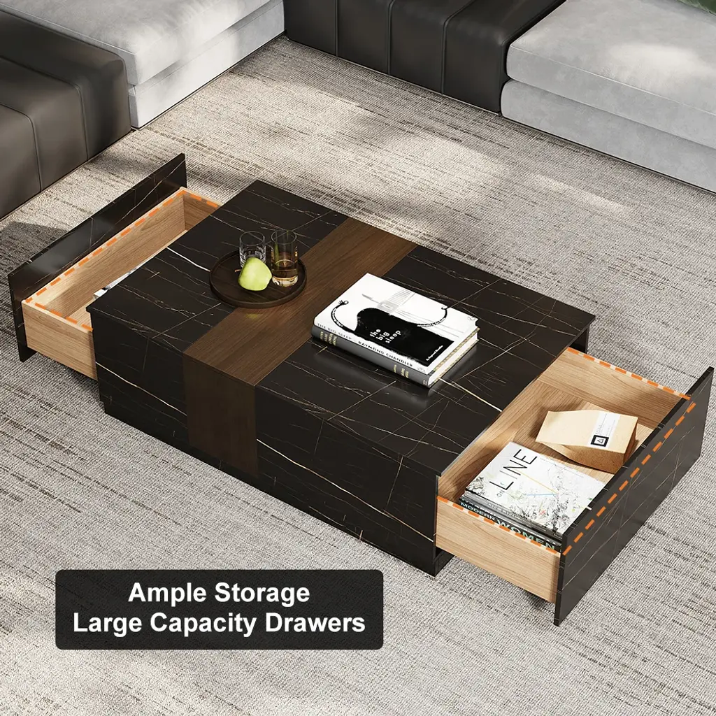 Vewal 47.2" Marble & Walnut Veneer Block Coffee Table With 2 Drawers