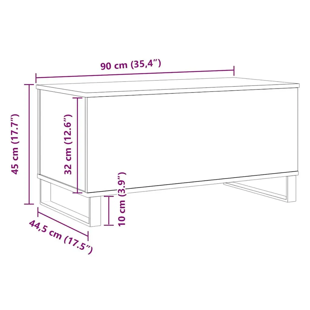 Vidaxl Coffee Table Artisan Oak Engineered Wood, Metal 35.4x17.5x17.7 In