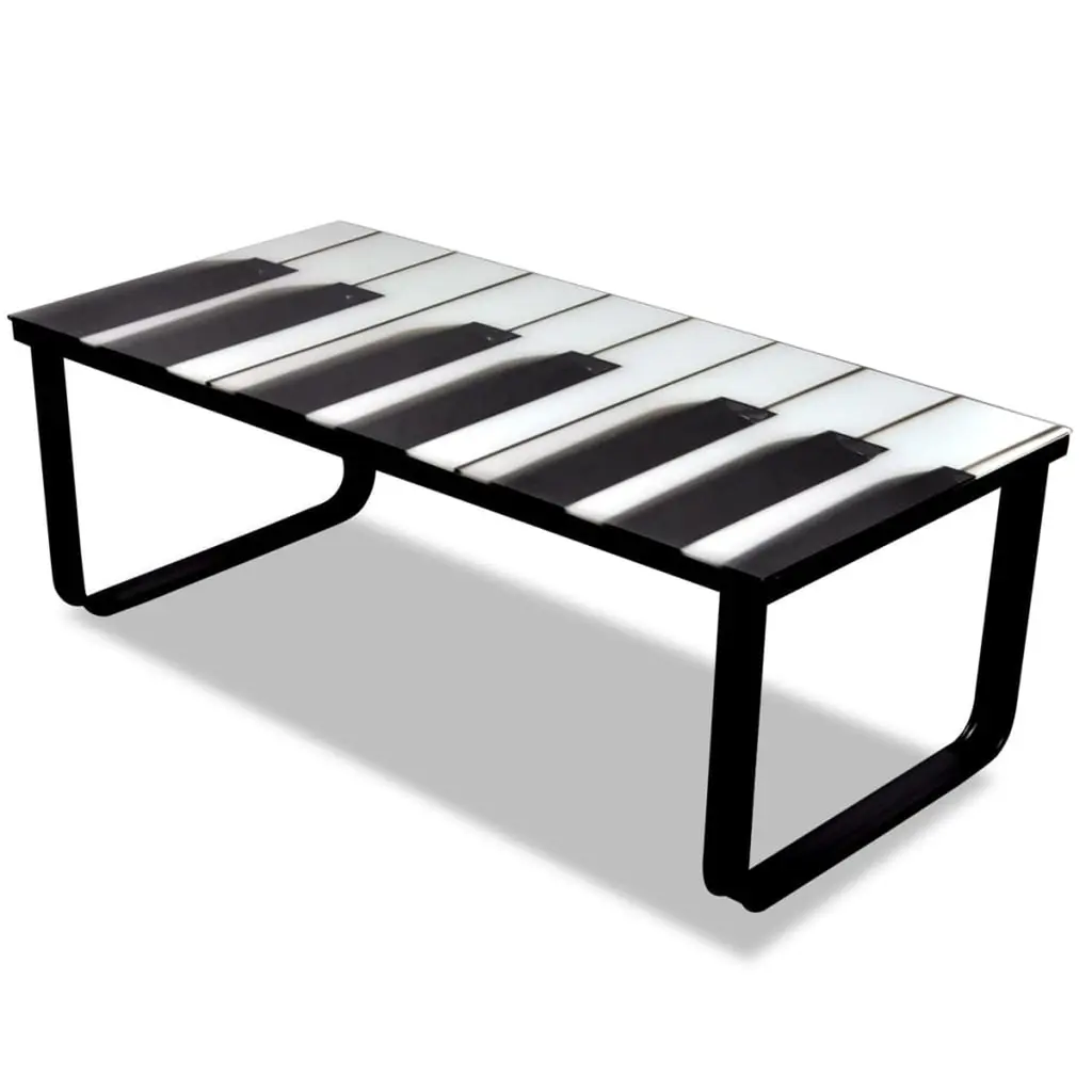This coffee table hides modernity and practicality, showcasing a stunning piano-print glass top that enhances any living room decor. With its sleek design and sturdy iron frame, it offers a contemporary touch, making it a focal point in your home. A contemporary design that fits various interiors, its sleek silhouette and piano keys printing adds a classy touch to your space.Made from sturdy tempered glass, it's stable and heat-resistant, making it great for coffee serving or displaying decor.With generous dimensions of 35.4 in in length, it offers plenty of surface area, balancing utility and aesthetics in your living room.Easy to maintain, the surfaces can be wiped clean with a damp cloth, making upkeep effortless while keeping it pristine.Designed for indoor use, its stylish look and functional design suit homes, offices, and lounge areas.