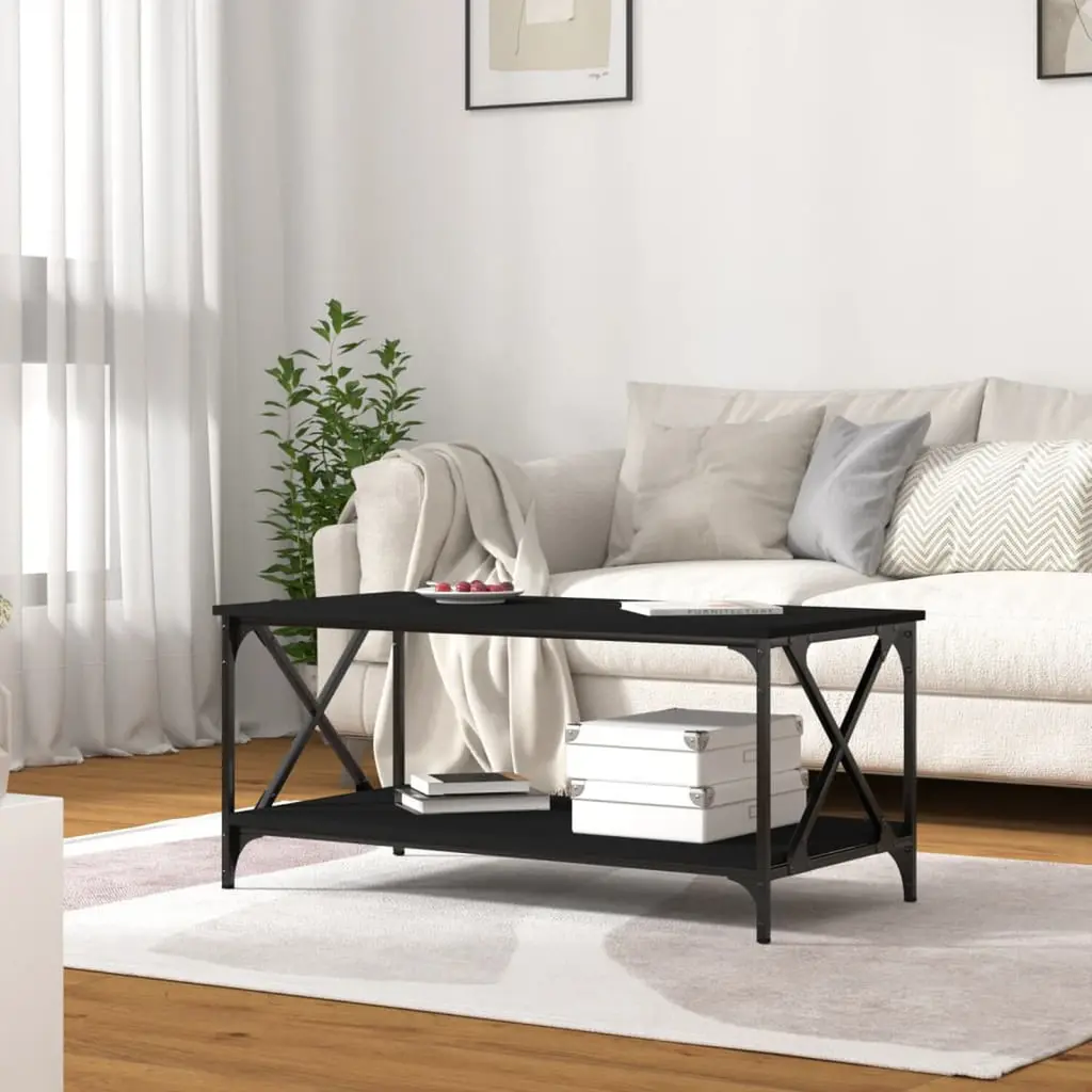 This coffee table is a great centerpiece for your living room, showing off some industrial flair with its sleek rectangular shape and minimalist design. Made with sturdy engineered wood and a powder-coated iron frame, it's both functional and stylish, perfect for drinks, books, and decor while adding a modern vibe to your space. Sturdy Build: Made from strong engineered wood with a powder-coated iron frame, this coffee table is built for everyday use while looking lovely in modern homes.Stylish Look: Its chic black finish and smooth texture give it a refined look, making it a splendid addition to any room.Multi-Use: This table is for various uses; whether entertaining guests or tackling daily tasks, it enhances both style and practicality.Easy to Care For: Keeping it clean is a breeze with a quick wipe-down, so it'll remain looking fresh without much fuss.Ample Size: At 39.4 in long, 19.7 in wide, and 17.7 in tall, this table gives you loads of space for your essentials while fitting nicely into different room layouts.