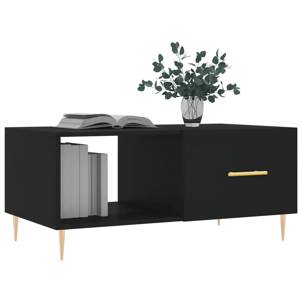 This modern coffee table is a versatile piece that enhances the look and practicality of your living area. With its sleek black finish and minimalist style, it’s not just a spot for your coffee; it’ll complement any furniture in your living room or home office. Stylish black finish that adds charm to any decorFree-standing design gives you flexibility in how you set it upLoads of storage with two compartments to keep things organizedSturdy frame with tapered legs for stabilityEasy assembly with tools included