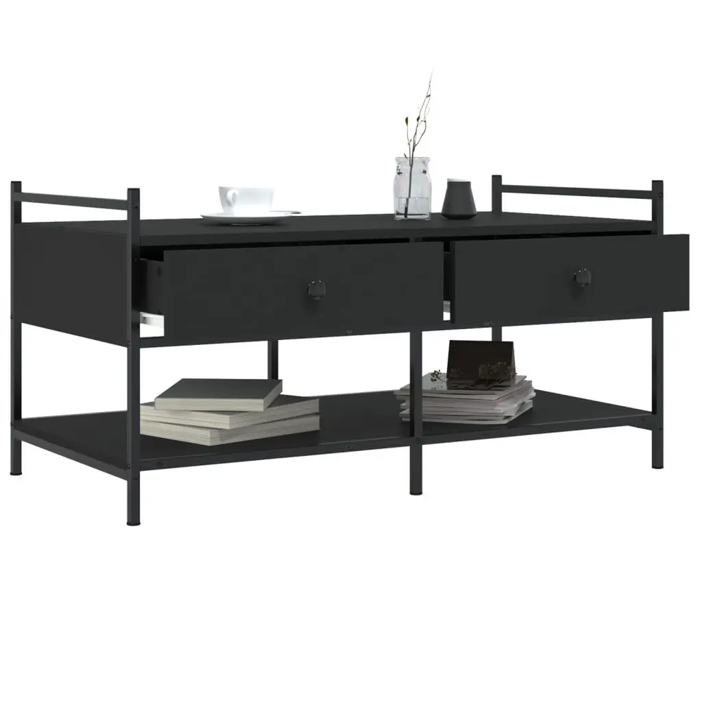 Check out this industrial style black coffee table—it's a fab choice for any living space. It combines style and function perfectly. The strong engineered wood top and solid steel legs make it a great focal point, adding a modern touch to your living room while giving you plenty of room for drinks, books, and other bits. This coffee table's design fits right in, whether your style is modern or traditional. The two roomy drawers keep your living area neat and tidy. Plus, the adjustable feet let you make sure it's stable, no matter the floor type. The sleek matte finish feels great and gives a polished touch to your decor. Its surface area is also perfect for everything from coffee to game nights.