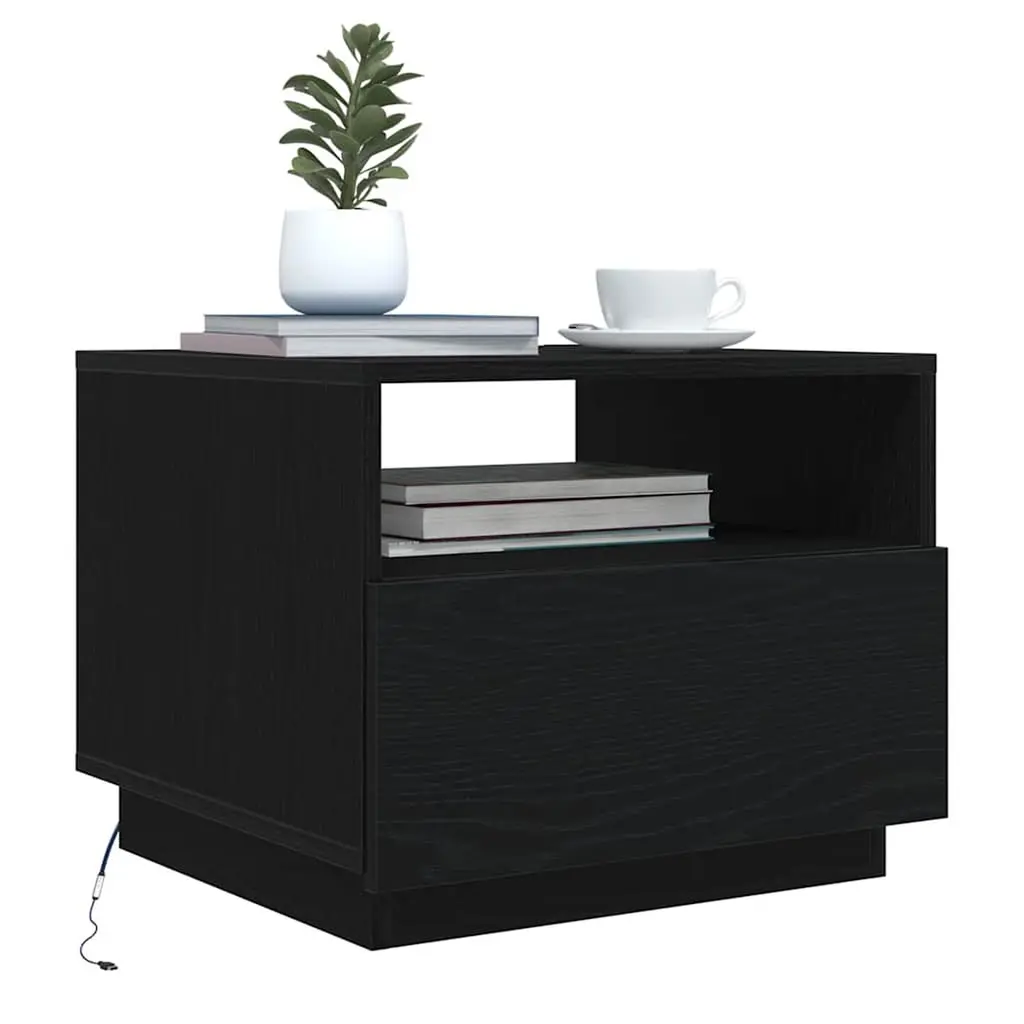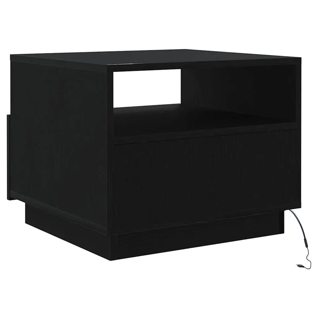 This Modern Coffee Table is the epitome of stylish functionality, crafted from engineered wood in a striking black oak finish that blends perfectly with contemporary living spaces. With its clean lines and smooth texture, it serves as a practical piece for your living room while also sprucing up your decor, providing a perfect spot for coffee, books, or decorative items with a touch of chic design. Contemporary Design: The sleek lines and minimalistic style of this coffee table make it a fantastic centerpiece in any modern living room. It combines beauty with practicality, fitting in with various themes.Built-in LED Accents: Its customizable LED strip lights add a vibrant touch to your decor. The ambient glow can highlight your favorite ornaments or create a chic vibe for entertaining guests.Ample Storage Space: With functionality at heart, this coffee table offers a generous surface area for drinks, snacks, and decor, keeping your living area stylish and organized. Ideal for both casual lounging and formal occasions.Durable Construction: Made from high-quality engineered wood, this coffee table is built to stand the test of time. Its smooth, glossy surface looks great and is easy to keep clean.Versatile Use: While it's perfect for serving coffee, this table can also transform into a side table or accent piece in different rooms. Its modern design fits into any setting, making it a practical addition to your home.