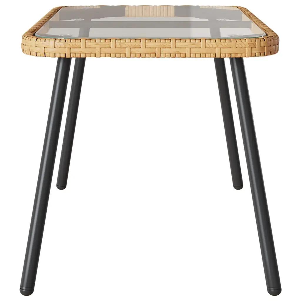 This Poly Rattan Coffee Table is a great blend of modern style and practicality, fitting right into your outdoor vibe. With its sleek rectangular shape and smooth feel, it adds a touch of elegance to any garden or patio. It's designed to match various outdoor furniture setups and serves as a fantastic surface for hosting friends or enjoying a relaxing day outside. Materials: Made from high-quality poly rattan, this coffee table's built to handle different outdoor conditions while keeping its charm over time. The glass surface not only looks fancy but also allows for easy cleaning and a clear view of anything underneath. Included Components: It's got a solid steel frame and sturdy legs, ensuring it stays put on various surfaces. Plus, the tough powder-coated finish boosts its durability and resistance to the elements, making it a reliable choice for any patio or garden. Features / Function / Design: Thanks to its sturdy build, the table is UV resistant, minimizing wear from the sun. Its design is both attractive and practical, so it can be anything from a fancy centerpiece to a casual dining spot. Recommended Uses: Perfect for gardens or patios, this table's a great option for hosting outdoor gatherings or serving as a central spot for outdoor seating. Whether you're hanging out or just chilling, it adapts to whatever you need. Care & Maintenance: Keep the table looking good by wiping it down with a damp cloth to clear away dust and marks. If you’re not using it for a while, consider covering it or storing it out of the weather to make sure it lasts for ages.