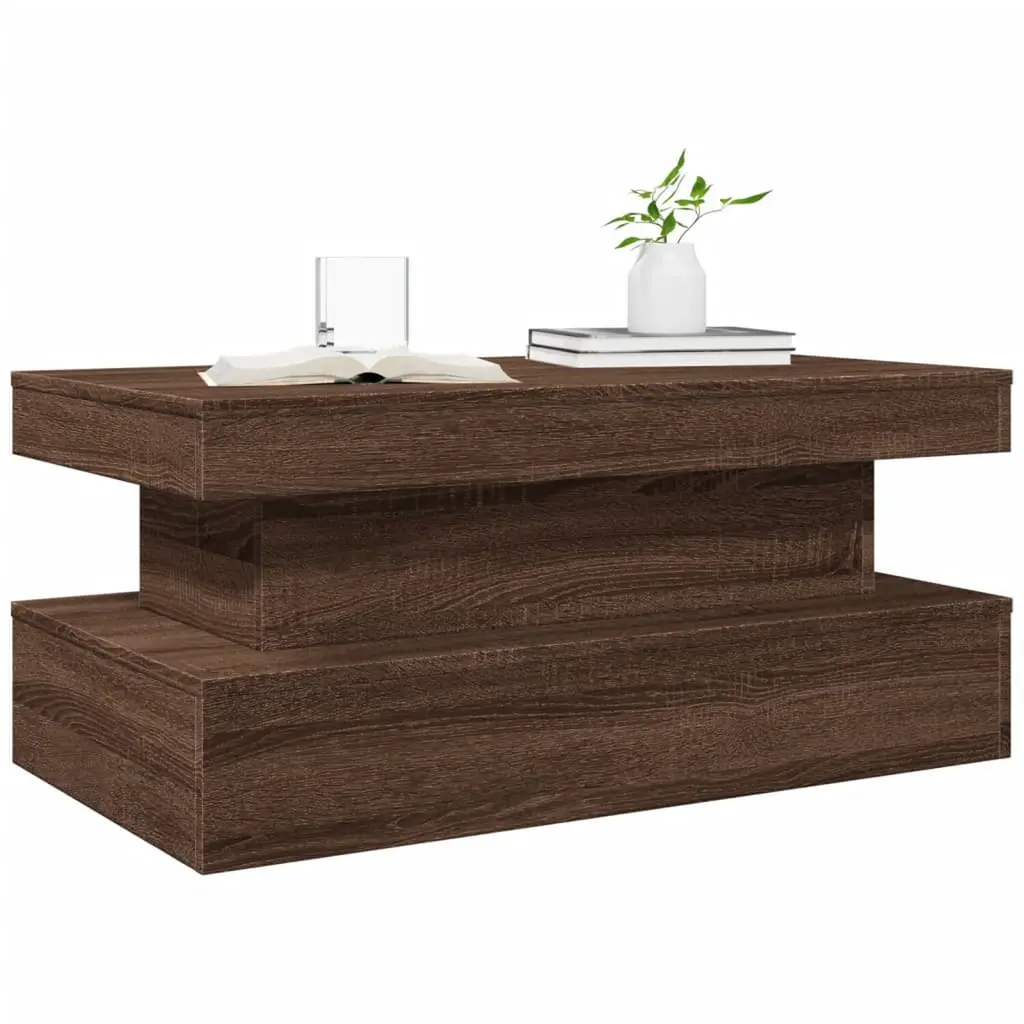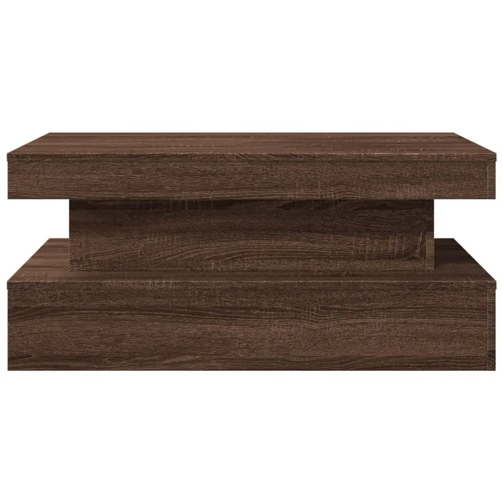 This coffee table is a beautiful mix of function and style, made from engineered wood in a lush brown oak finish. Its modern look comes with built-in LED lights, making it a great fit for your living room, office, or hallway. Built-In LED Lighting: Enjoy the perks of integrated LED strips that light up your decor and create a warm, inviting atmosphere. These cool lights switch up the patterns and colors, making your space feel lively during gatherings. Sleek Modern Design: With its shiny finish and minimalist lines, it adds a sophisticated touch, blending perfectly with contemporary furniture and upping the elegance of any room. This coffee table isn’t just a piece of furniture; it’s a showpiece that enhances your interior vibe. Durable Engineered Wood: Made from moisture-resistant engineered wood, this table is built to last under daily use. Its smooth finish adds a refined feel while standing tough against family life. Versatile Functionality: Whether it’s for serving coffee, as a side table by your sofa, or a stylish accent piece, this table vibes well with your needs. Great for entertaining or showcasing your favorite decor, it’s a must-have for your home. Generous Dimensions: Measuring 35.4 in long, 19.7 in wide, and 15.7 in high, this table offers plenty of surface space for drinks, snacks, and decorative items while still being compact enough for various room settings.
