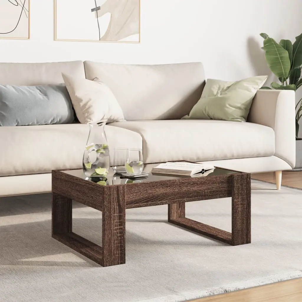 Vidaxl Coffee Table Brown Oak Engineered Wood, Glass Medium Coffee Table