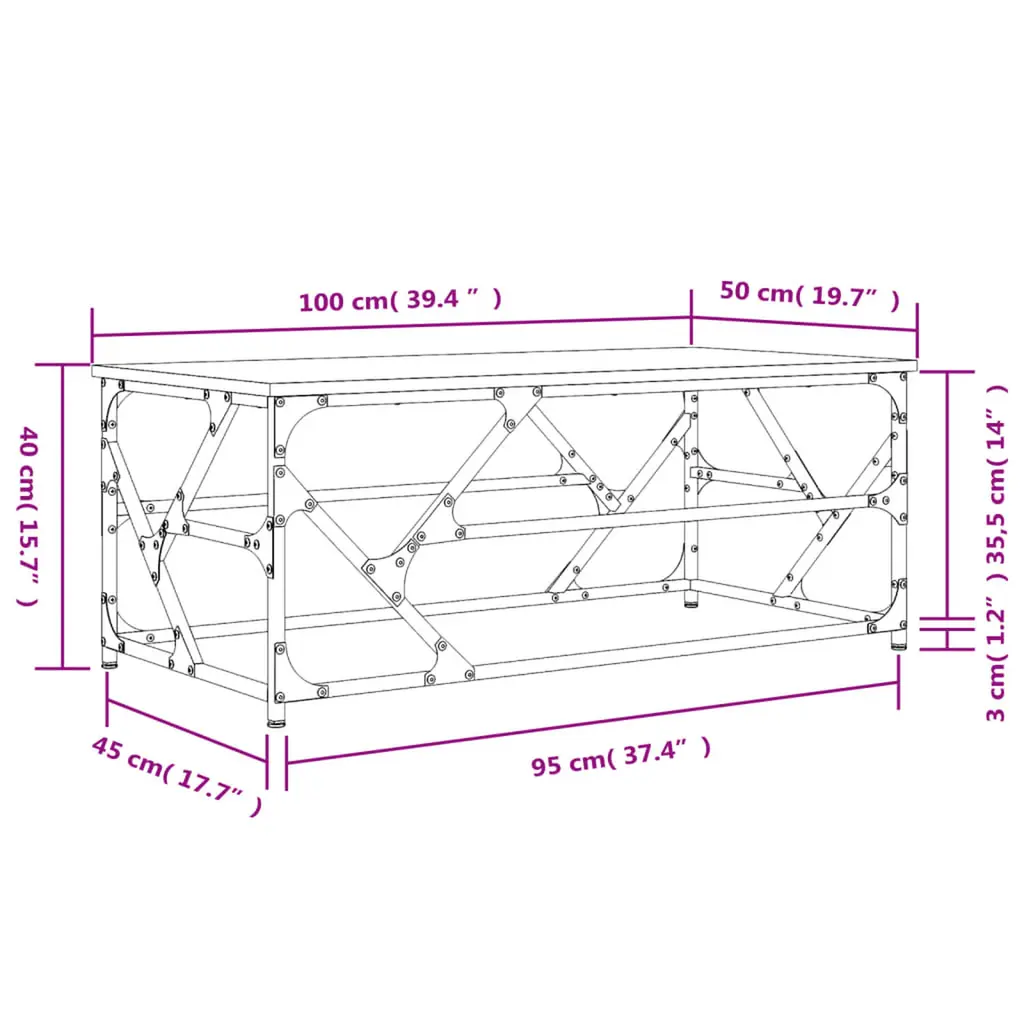Vidaxl Coffee Table Brown Oak Engineered Wood, Metal Standard