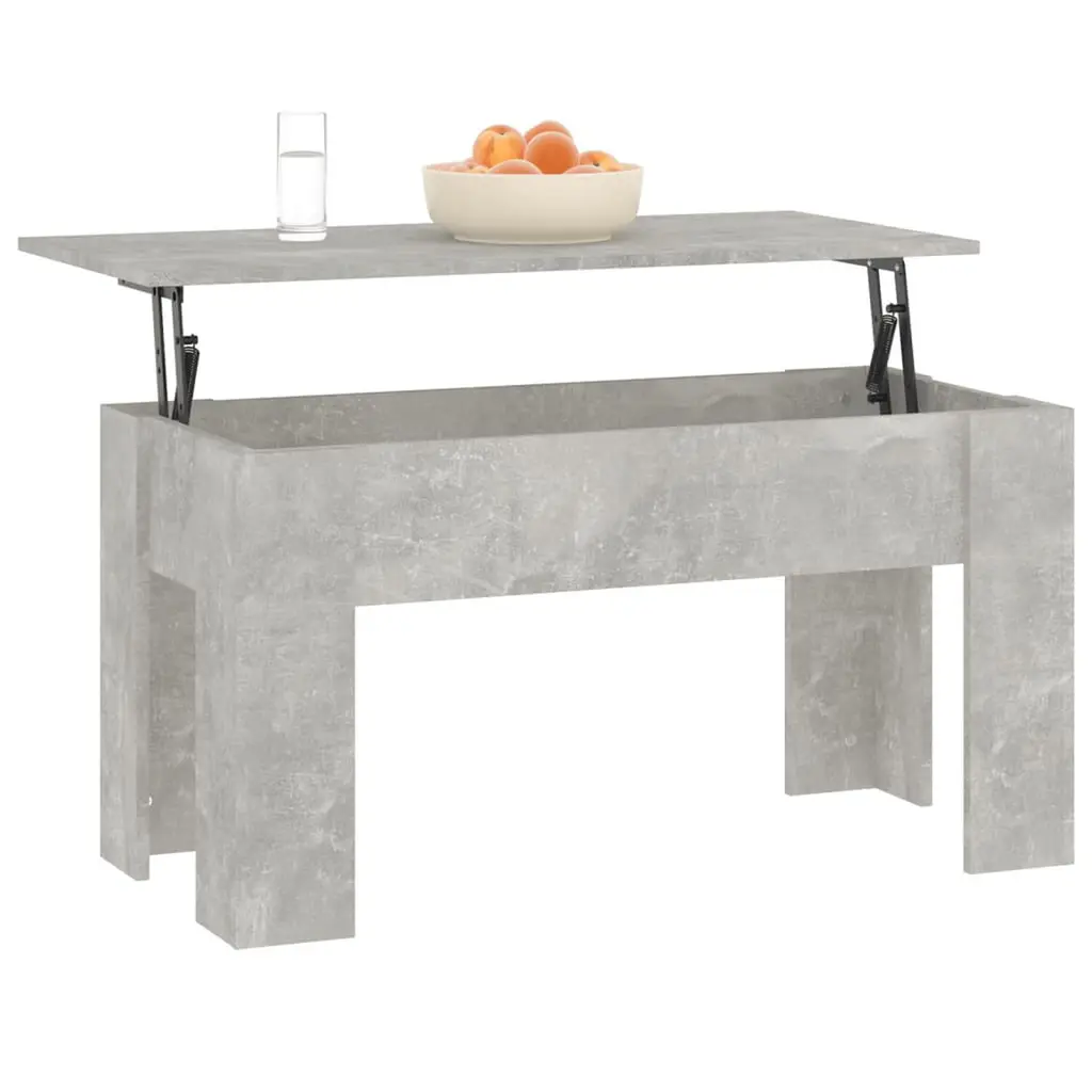 This coffee table combines modern design with practical function, making it a fab centerpiece in any living room or lounge area. With its chic concrete gray finish and clean lines, it adds to the decor while offering loads of space for drinks, books, and decorative stuff. Lift-Top Design: The lift-top mechanism allows this coffee table to shift smoothly from a classic table to a compact workspace. You can enjoy coffee or work on your laptop from the comfort of your living room.Elegant and Functional: The clear, smooth surface looks great and is moisture-resistant, so spills can be cleaned up easily without any lasting mess.Versatile Use: Suitable for all sorts of settings, this table is spot-on for serving coffee, playing games, or casual meals. Its adjustable height means you can change its use on the fly.Sturdy Build: Made from durable engineered wood, this table is designed to take daily use, supporting up to 110.2 lbs, making it a solid choice for any household.Compact Design: At 39.8 inches in length and 19.3 inches in width, this coffee table fits neatly in medium-sized living rooms while maximizing usability without taking up too much space.