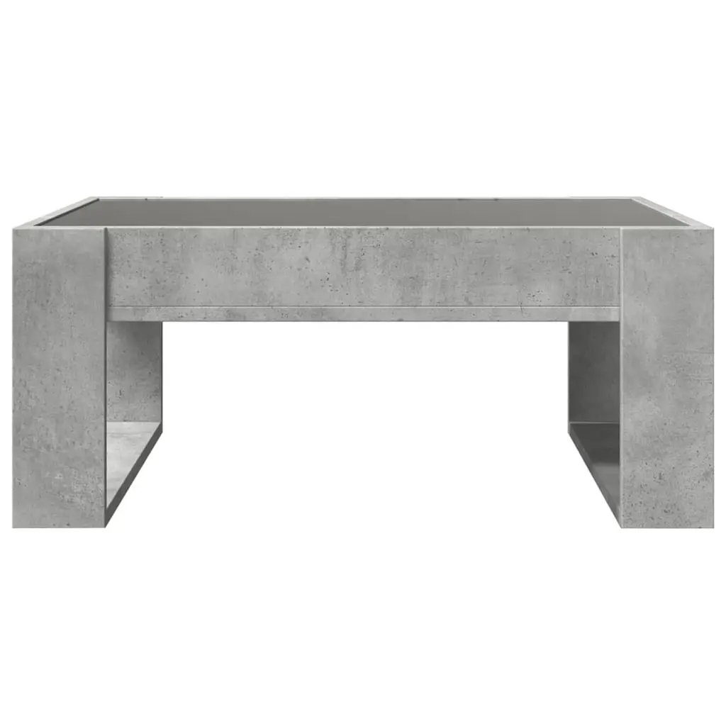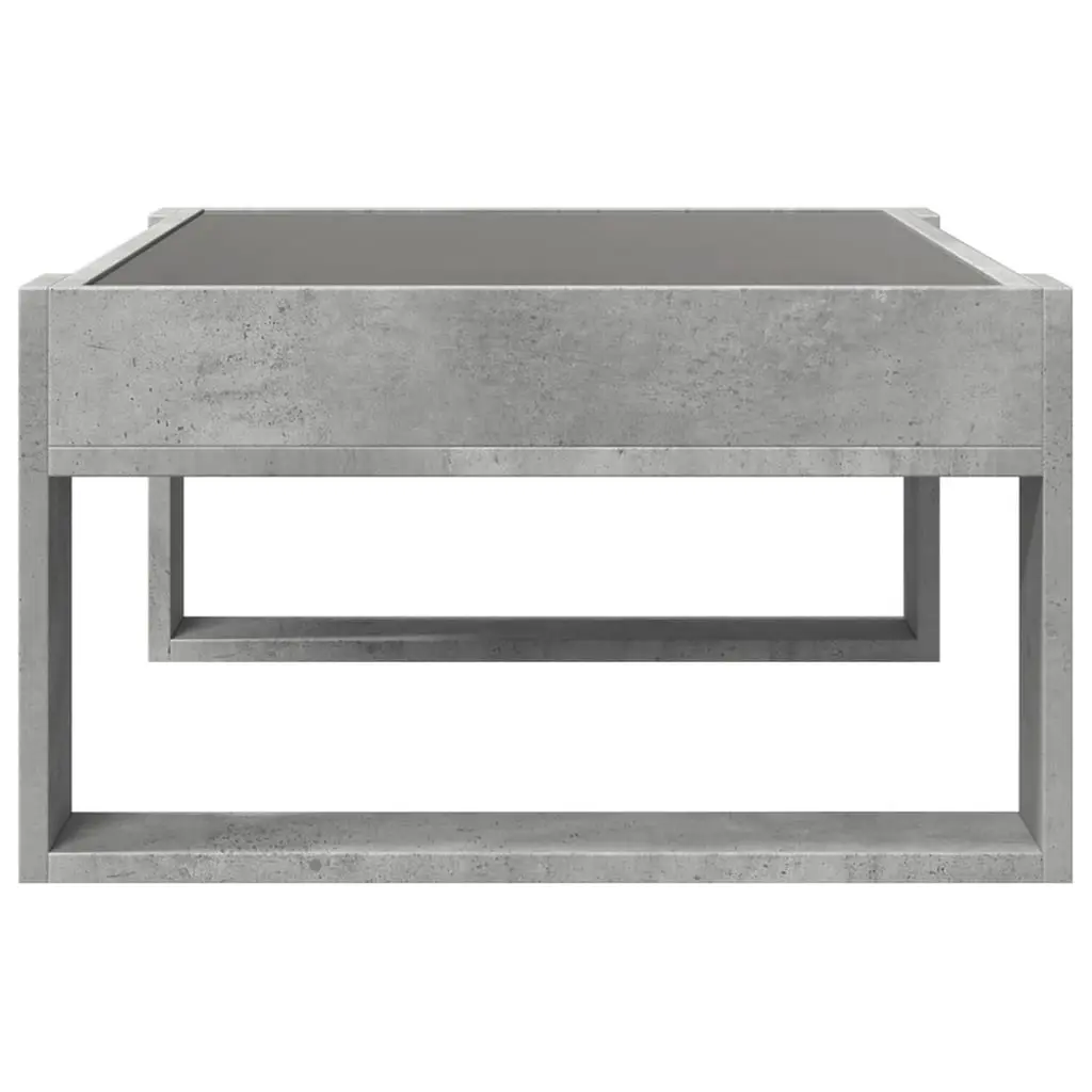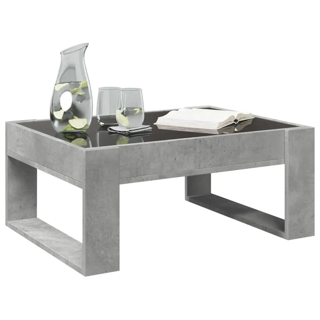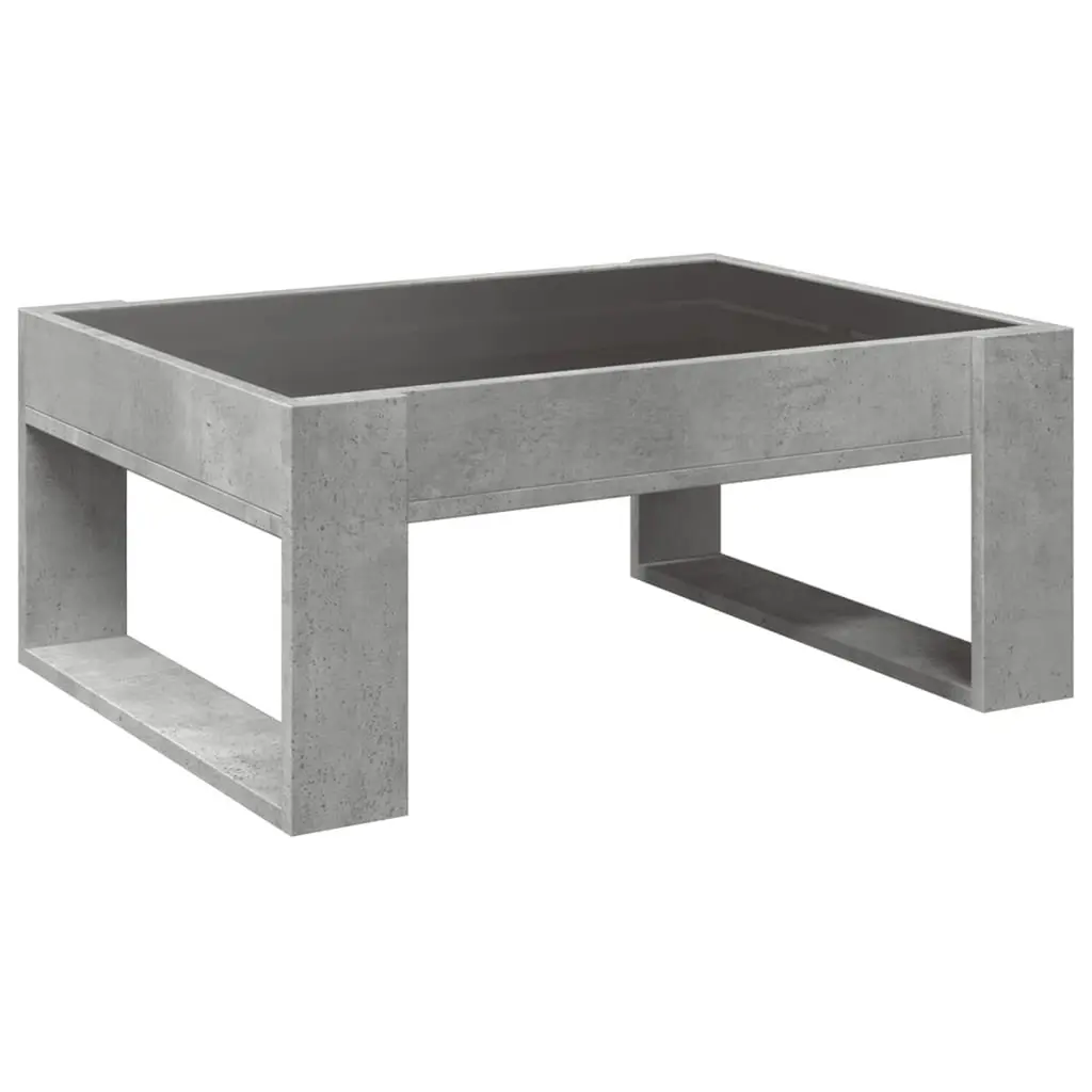 This modern coffee table is all about practical style, making it a cool addition to any living room or bedroom. With a trendy concrete grey finish and built-in LED lights, it not only looks great but also gives you a fantastic spot for coffee or decorative displays. Built-In LED Lighting: The table has integrated LED lights that can change the vibe in your living area. With adjustable modes and brightness, these lights create a lively atmosphere for relaxing or entertaining.Contemporary Aesthetic: The sleek and smooth surface along with a modern design gives this table a classy touch. It's perfect for those wanting practicality wrapped in style.Versatile Usage: This table is not just a coffee table; it can double as an end table or accent piece, serving in different spaces like lounges or bedrooms, fitting right into your lifestyle.Thoughtful Dimensions: 27.6 in long, 20.9 in wide, and 11.8 in high, it’s made to be compact yet spacious enough for drinks and decor. Its size works well in smaller areas without losing function.Quality Materials: Made from engineered wood and glass, this table is attractive and robust. The matte finish helps resist scratches, and its smooth texture radiates a bit of luxury.