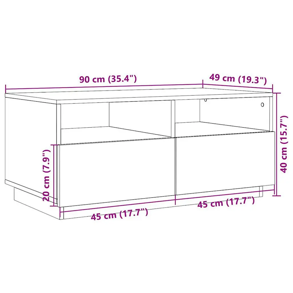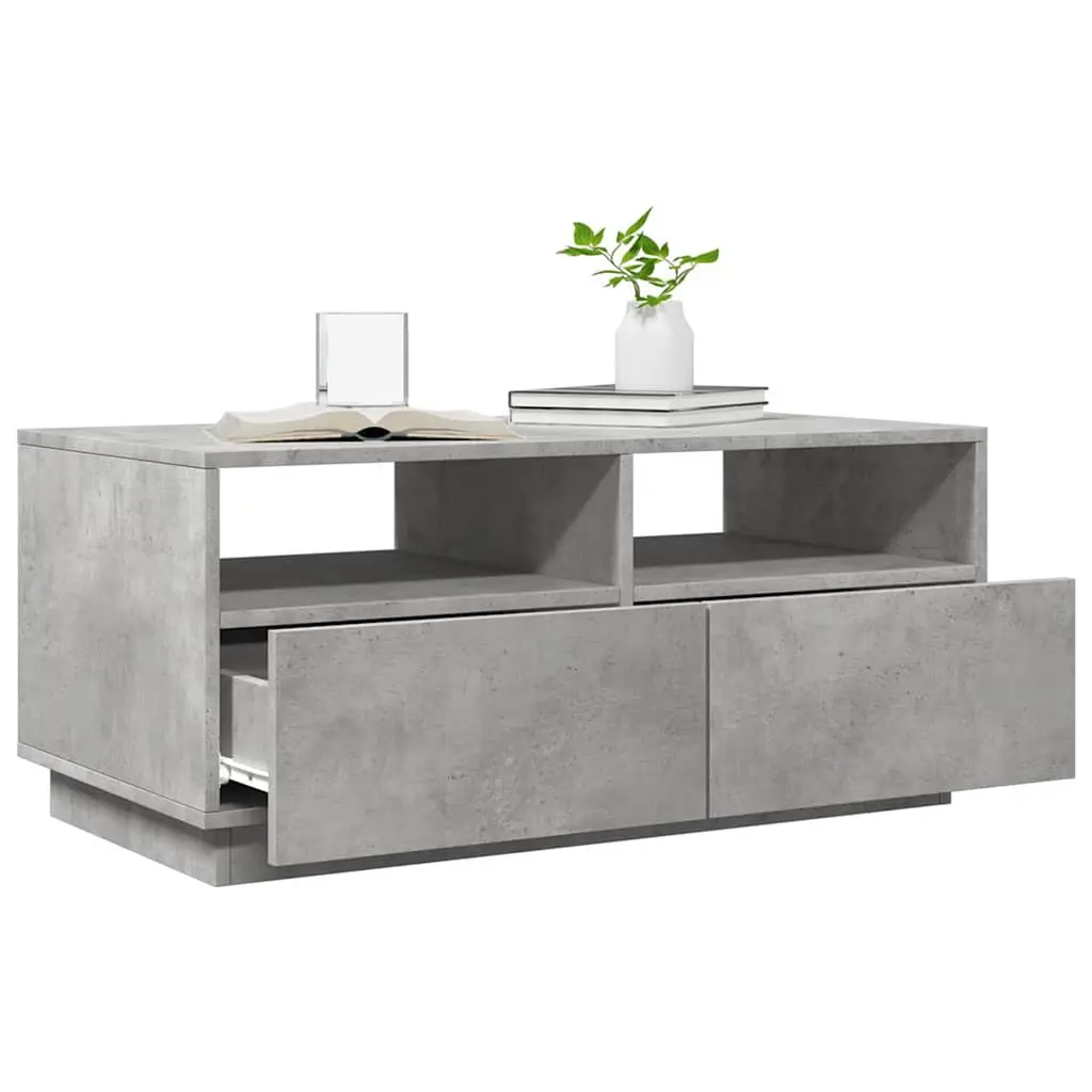 This Concrete Grey LED Coffee Table is a stunning centerpiece that fits perfectly in a modern living space. With its sleek lines and integrated RGB LED lighting, it creates a welcoming vibe, merging style and function flawlessly while making your coffee breaks better, whether you’re hosting friends or enjoying a quiet night in. Integrated RGB LED lights that can create a vibrant atmosphere, perfect for any occasion. These dynamic lights not only add color to your space but also elevate the overall aesthetic of your living room.Modern design crafted from engineered wood ensures both elegance and durability, making it a stylish and reliable addition to your home furnishings.The surface is designed for practical coffee serving or displaying decorative items, compact yet spacious enough for daily use alongside functional storage.Equipped with two drawers, providing you ample space to organize living room essentials while maintaining a clean and neat look.Measuring 35.4 x 19.3 x 15.7 in, this medium-sized table fits snugly in various settings, from spacious lounges to cozy apartments, enhancing your room’s functionality.