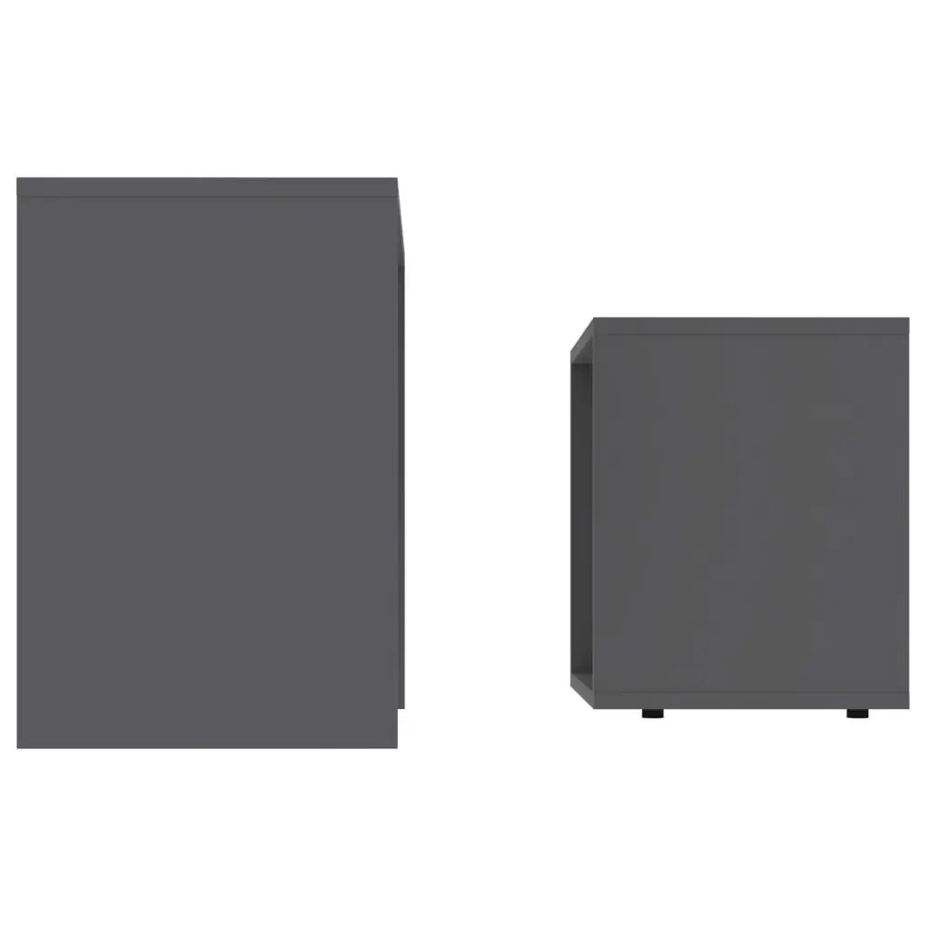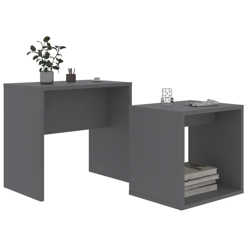 This set of stackable coffee tables has a stylish modern design, adding elegance and practicality to your space. Made from quality engineered wood, the lovely gray finish fits in with contemporary decor while giving you surfaces to place drinks, books, and decorative items. Modern Aesthetic: Sleek gray finish adds a trendy touch to any room.Stackable Convenience: These tables stack up effortlessly for easy storage, perfect for tight spots.Versatile Applications: Use them for serving coffee, as end tables for entertaining, or just extra surfaces; they'll adapt to your needs.Robust Construction: Built from strong engineered wood, these tables are sturdy enough for daily use while looking chic.Easy Maintenance: Just wipe them down with a damp cloth to keep them looking pristine.