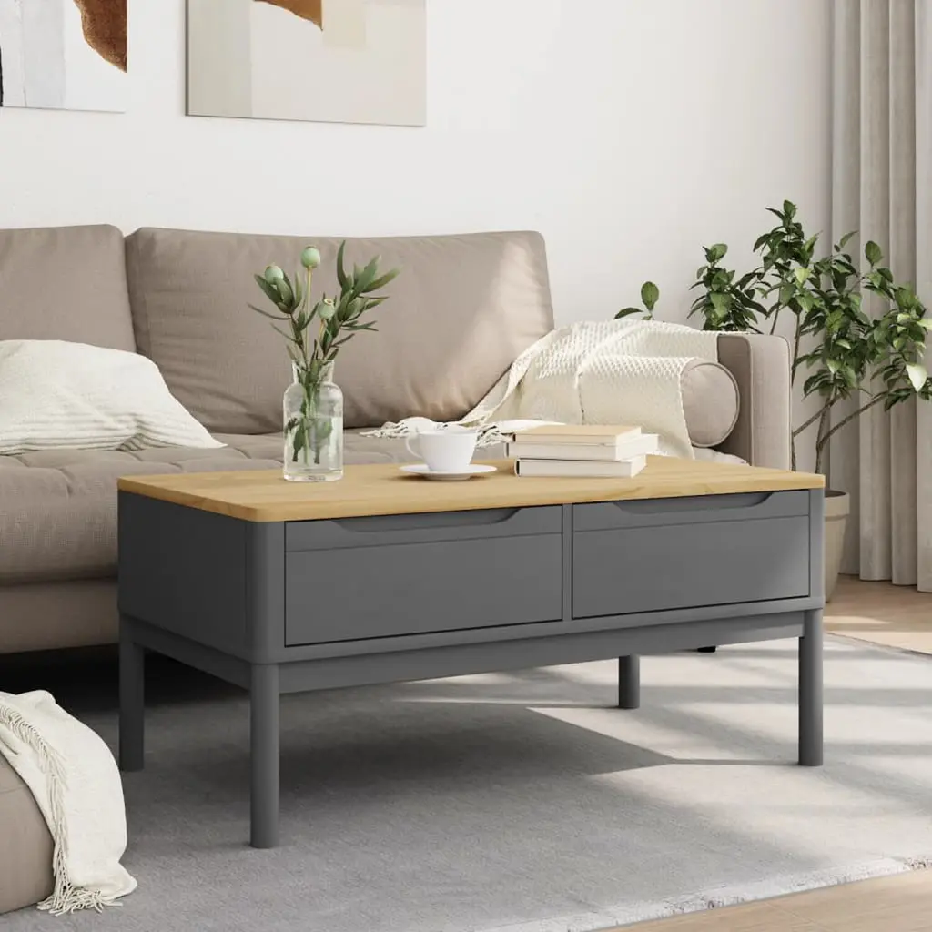 This coffee table combines modern and rustic vibes, offering both style and function. Perfect for living rooms and hallways, its sleek grey finish fits a range of decor while providing useful storage. Storage Space: The coffee table helps keep things organized, with two drawers providing ample storage to keep your living space tidy. Solid Pine Wood: Built from solid pine wood, this table is designed for durability and long-term use, ready to handle daily wear and tear. Decorative Inlays: Unique design elements like decorative inlays not only look great but also add a creative touch to your space. Matte Finish: The matte finish gives it a stylish yet understated look, blending perfectly into any room without overwhelming the decor. Dimensions: At 39 in long and 21.9 in wide, this table is spacious enough for everything from coffee serving to being a chic coffee table.