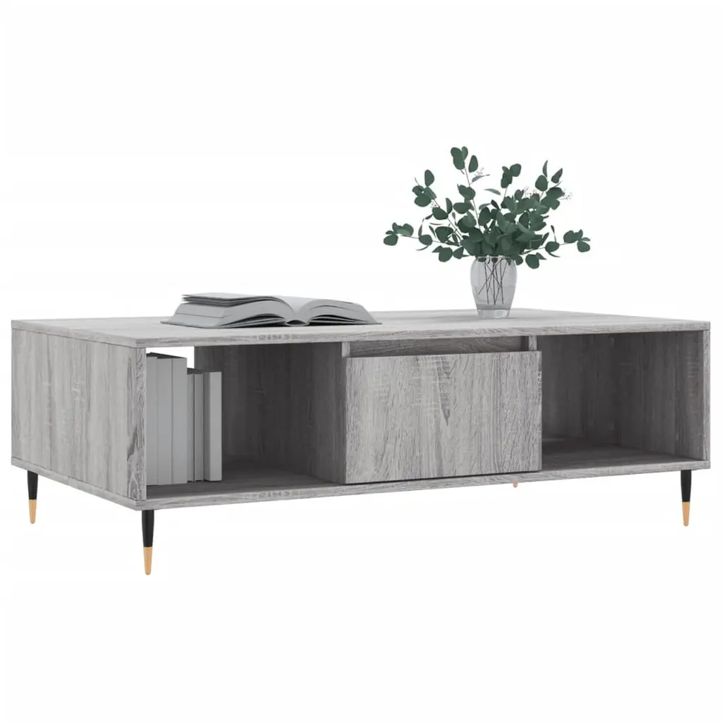 This coffee table with a lovely grey Sonoma finish brings a touch of elegance to any space, blending functionality with a modern vibe. Made from engineered wood with sturdy iron legs, it provides a great surface for your drinks, books, and decorative items, making it essential for your home. Loads of Storage: With plenty of space, the table easily fits books, decor, and drinks, making it perfect for your living space or office. Trendy Design: The matte grey finish enhances its modern look, making it a standout feature in your home. Sturdy Build: High-quality engineered wood and a solid metal frame ensure it withstands daily use, promising durability. Multi-Purpose: Ideal for daily coffee routines or small gatherings, this coffee table suits various occasions. Easy Care: Keeping it clean is a breeze; just wipe it down with a damp cloth, keeping it looking fresh.