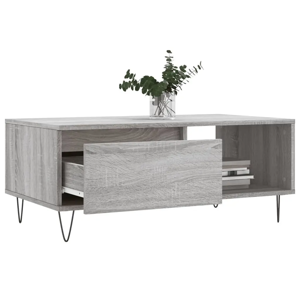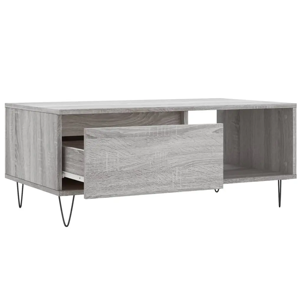 This coffee table is a real showstopper for your living space, mixing style with practicality. With its sleek Grey Sonoma finish and clean lines, it turns your living area into a modern and welcoming spot, perfect for serving drinks or showcasing decorative bits. Stylish Finish: The Grey Sonoma finish adds a touch of sophistication, easily blending with a range of colors and decors.Functional Drawer: The handy drawer helps you keep essentials organized and at hand, boosting your living space's functionality.Sturdy Construction: Made from engineered wood, this coffee table is built to last and provides a solid surface for daily use.Versatile Use: Great for hosting guests, casual dining, or creating a cozy reading nook, adapting to your lifestyle.Easy Assembly: Comes with all you need plus straightforward instructions to make setting it up a breeze, so you can enjoy your new furniture in no time.
