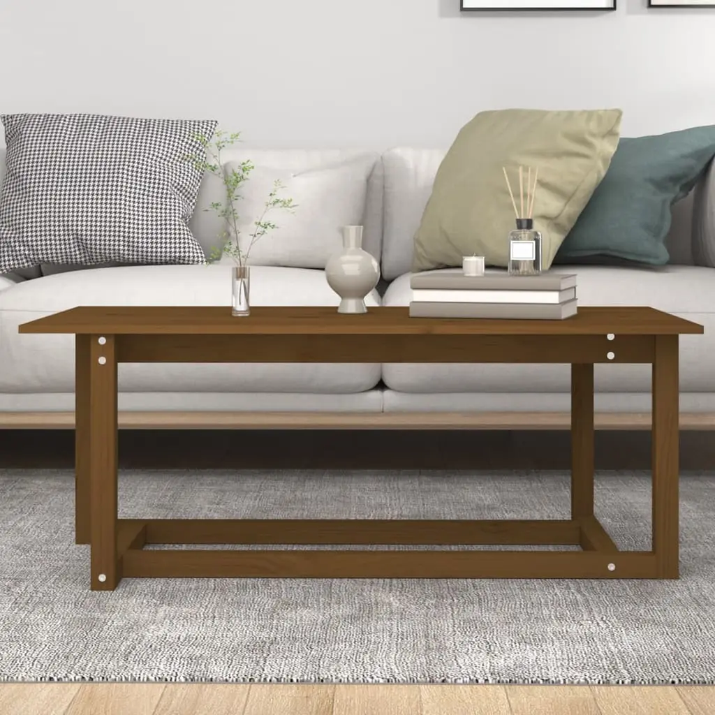 This rustic coffee table adds warmth and character to your living space. Made from solid pine wood, its honey brown finish complements your decor while providing a solid surface for drinks, books, and decor items. Sturdy Construction: The solid pine wood frame means this table is built to last, able to handle everyday use and adding a natural vibe to your decor.Rustic Design: The matte finish shows off the wood's unique patterns and grains, bringing a country-style charm to your living room.Versatile Use: This table is awesome for coffee, snacks, or drinks while keeping your space tidy.Easy Assembly: Setting it up is a breeze with clear instructions needing just a screwdriver and one person.Thoughtful Dimensions: At 43.3 x 21.7 x 17.7 in, it fits nicely in various spaces, balancing function and style perfectly.