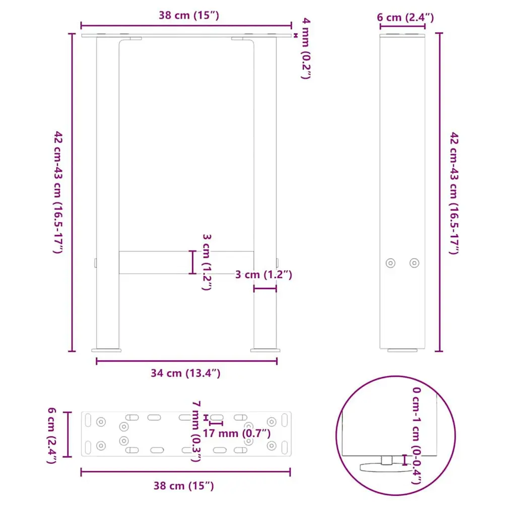 This coffee table leg set delivers stylish support and practical adaptability, perfect for enhancing modern furniture. Made from tough powder-coated steel, these legs come in a chic anthracite finish that boosts the vibe of your living space while ensuring stability and strength. Height Adjustment: These legs come with manual levelers to adjust from 16.5 to 17 in, so you can stabilize your furniture on uneven surfaces with ease. This flexibility means improved comfort and usability indoors.Heavy Weight Endurance: Built to support significant weight, these legs are done up to handle heavy use without sacrificing stability. Enjoy reassurance knowing your furniture can manage daily demands.Finish: The matte finish not only helps avoid scratches and wear but also complements modern decor. It adds a nice detail that fits seamlessly into contemporary designs.Easy Installation: The screws and bits included make assembly a breeze, ensuring a hassle-free setup. With simple tools, you'll mount them efficiently.Versatile Use: Perfect for coffee tables, dining setups, or workstations, their modern design suits various applications, allowing you to refresh your furniture effortlessly.