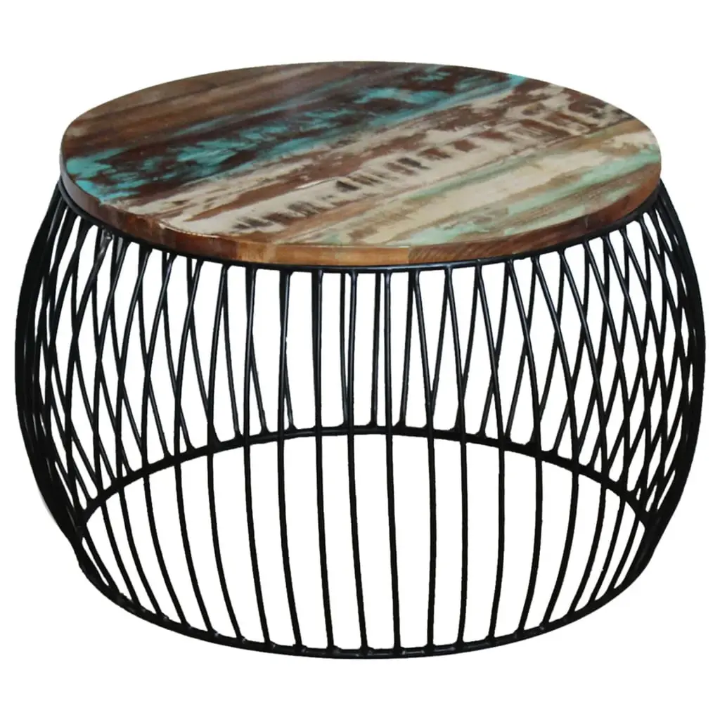 This vintage round coffee table is a fantastic mix of reclaimed wood and sturdy iron legs, making it a striking piece for your living room. With its unique craftsmanship, this table serves both function and aesthetic, adding rustic charm and warmth to any decor. Perfect for casual coffee catch-ups or formal gatherings. Handmade Craftsmanship: Each round coffee table is handmade, giving it unique variations that add character. This attention to detail means your table is one-of-a-kind, showcasing an artisanal quality that enhances its charm.Durable Frame: Built with a robust metal frame, the table features iron legs with a powder-coated finish that makes them tough against wear and tear. This durability keeps the table stable and solid for years, making it a smart choice for both daily and occasional use.Timeless Design: The vintage style of this coffee table works well with all kinds of decor, from modern to traditional. Its round shape encourages conversation, creating a comfy vibe for hanging out with friends or family.Reclaimed Materials: Made from solid reclaimed wood, this table boasts beautiful textures and patterns while promoting eco-friendly living by recycling materials. This responsible choice adds character to your space without harming the environment.Versatile Size: At 26.8 in in diameter and 14.6 in tall, this medium coffee table offers a spacious surface for drinks, books, and more, fitting perfectly into both large and cozy living areas.