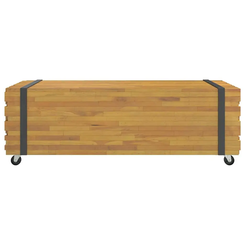 Vidaxl Coffee Table Natural Teak Solid Teak Wood Medium Rollable
