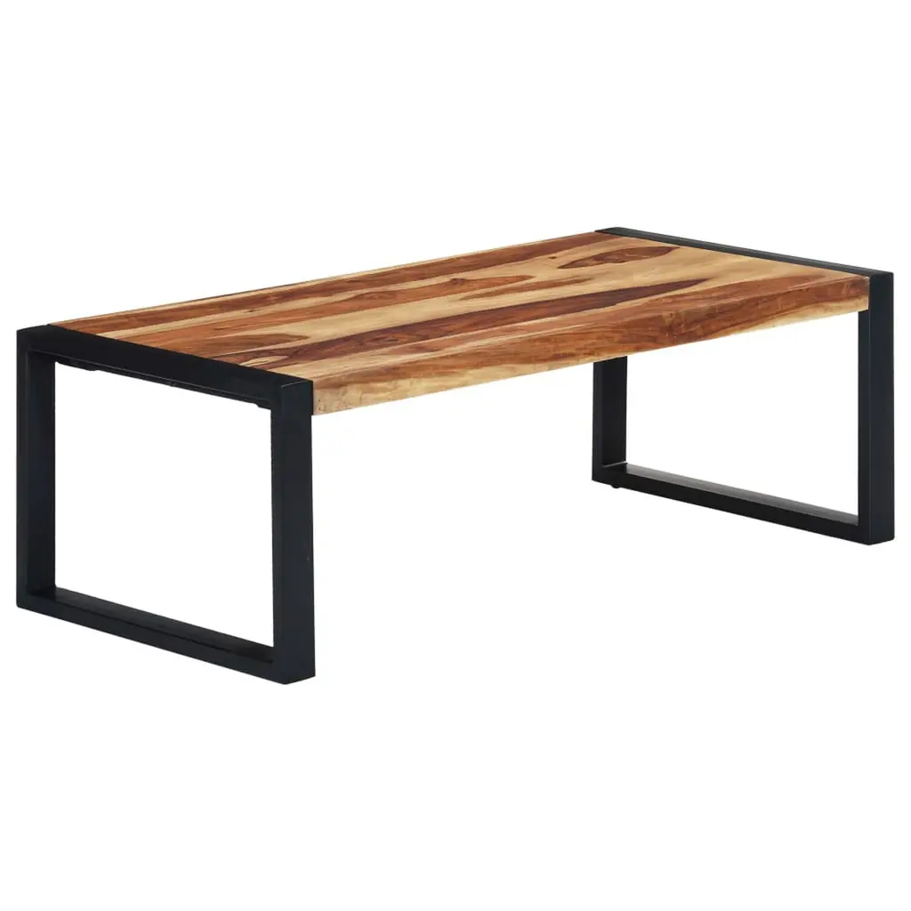 This rustic coffee table is a stylish addition to any living room or home office, blending style with function. With a solid Wood surface and solid powder-coated steel legs, this table is all about craftsmanship and durability, making it a must-have for anyone who loves quality furniture. Exceptional Material: Made from solid Wood, this coffee table has a unique natural finish that looks great and is sturdy. The grain patterns give each table its own character, making them all unique. Reliable Stability: The powder-coated steel legs ensure it's strong and stable, with a long lifespan while resisting rust and damage, making it great for everyday use. Stylish Design: With a polished and lacquered finish, the surface is easy on the eyes and a breeze to clean. This sleek look goes well with various decor styles, especially rustic and modern. Functional Versatility: This table is ideal for serving coffee or acting as a parent table in your living space. Its generous surface area can hold drinks, books, or decorative trinkets, adding practicality and style. Ideal Dimensions: At 43.3 in long and 23.6 in wide, this coffee table takes up minimal floor space while providing plenty of surface area for your convenience.