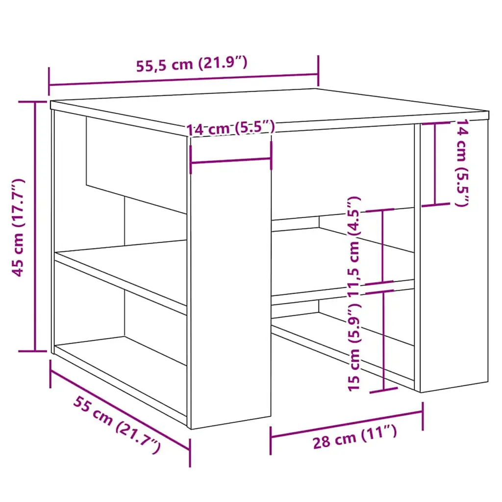 This modern coffee table in old wood looks simple yet elegant, perfect for jazzing up any living room. Its square shape and engineered wood fit in with loads of decor styles, making it a solid choice for gatherings, coffee serving, or just showing off your books and decorations. Enhanced Usability: The ample storage means you can keep your living area neat while looking stylish. Perfect for anyone wanting a tidy space.Visual Appeal: The smooth texture and old wood finish give it a classy look, making it easy to match with many modern interiors. It really boosts the vibe of your living room.Multi-Purpose Design: This table is not just for coffee; it can be used as a side table or accent piece, making it super versatile. A great addition to any room!Size and Durability: At 21.7 in long and 17.7 in high, it’s easy to use and really sturdy. It holds up to 132 lbs, so feel free to place what you want on it.Indoor Focus: Made for indoor use, it fits into cozy spaces perfectly. Its modern design blends well in casual or more sophisticated setups.