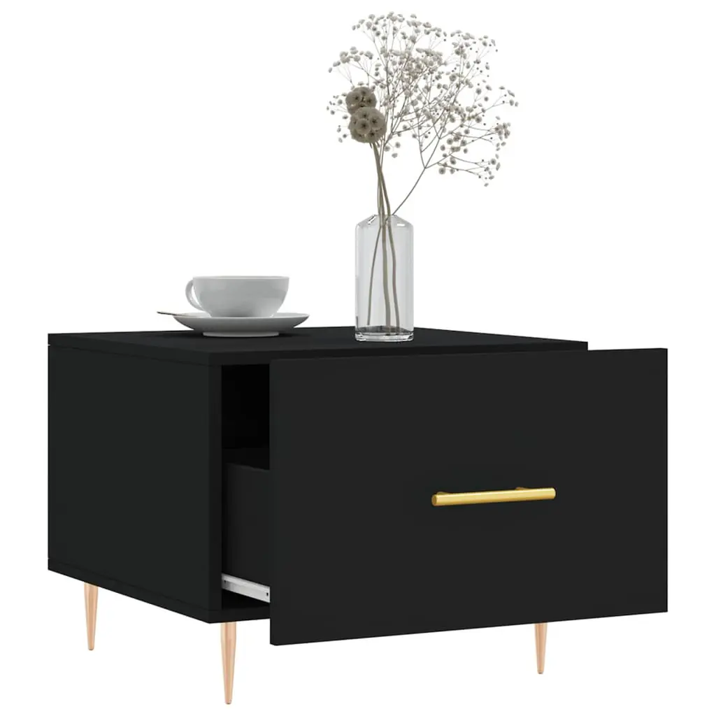 These sleek black square coffee tables are where modern design meets practicality, making them a standout in any living room. With simple lines and a smooth matte finish, they're not just functional for drinks and books but also lift your space's overall vibe, fitting in beautifully with different styles. Modern Design: With a stunning black matte finish, these tables add a chic touch to your decor. Their stylish but practical vibe fits right into any modern setting, whether it's a snug corner or a big living room. Ample Storage: Each coffee table has a neat drawer to keep your things organized and within easy reach, cutting down on clutter while boosting the room's elegance. Durable Material: Made from sturdy engineered wood, these tables are tough while looking good. The iron legs provide stability and durability, letting you enjoy them for ages. Compact Size: At 19.7 in x 19.7 in and 15.7 in tall, they fit perfectly in smaller areas, making them a top pick for apartments and cozy living rooms while being both functional and stylish. Easy Maintenance: The matte finish not only looks fab but is easy to clean; just wipe with a dry cloth to keep them looking new and avoid harsh chemicals to keep the finish intact.