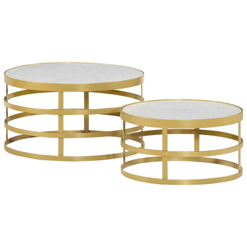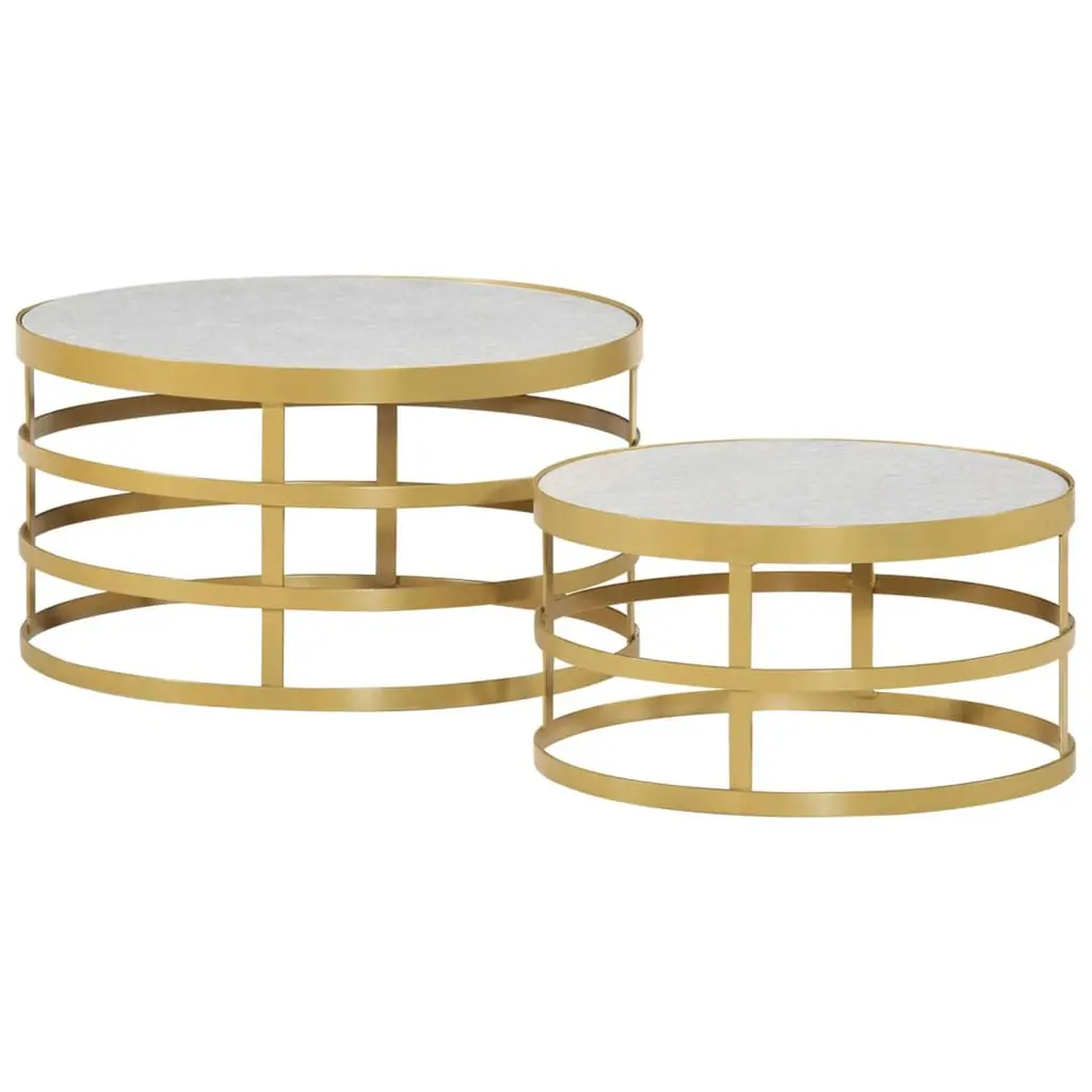 Vidaxl Coffee Table Set Of 2 Brass And White Marble, Steel Small