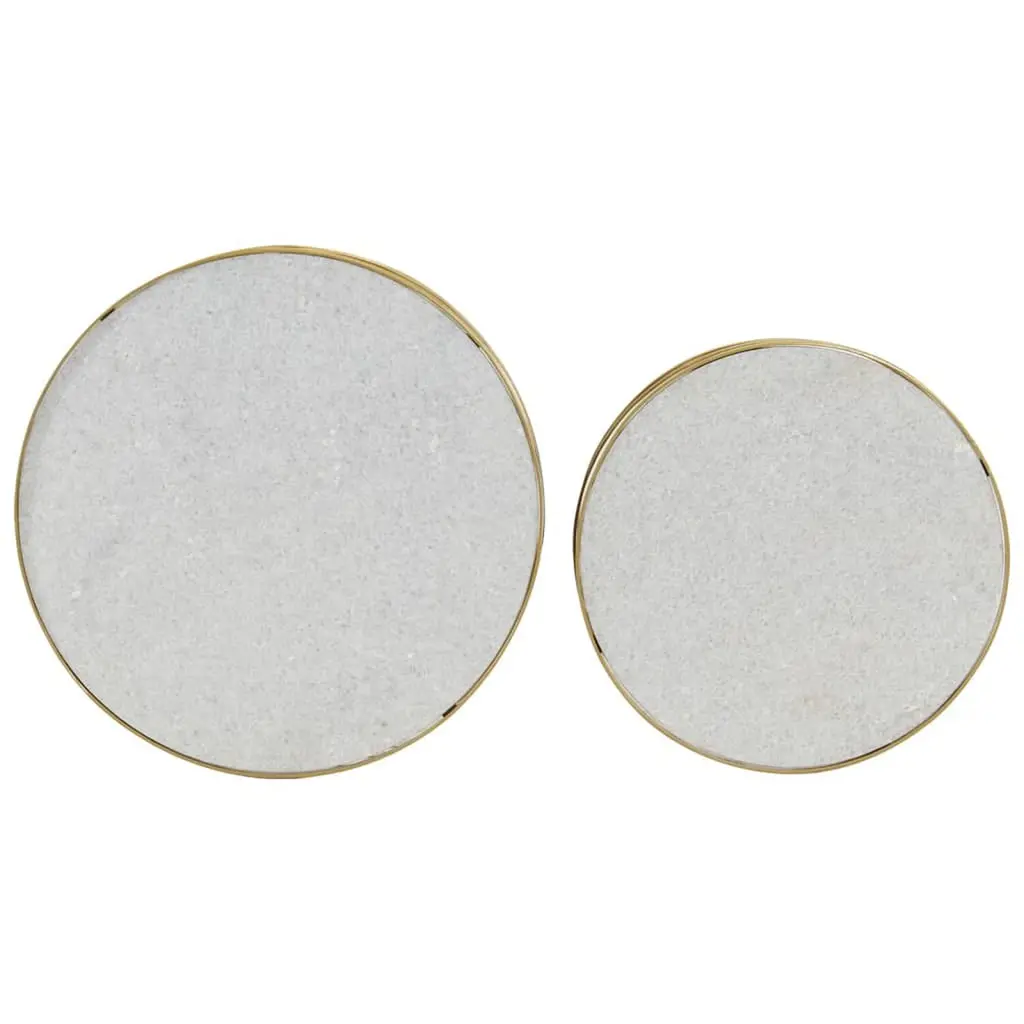 This 2-Piece Coffee Table Set is a stunning mix of chic marble and metallic brass accents, adding a posh vibe to any indoors. It's perfectly designed for both practicality and looks, fitting seamlessly into modern spaces and making your living room or office feel inviting. Elegant Finish: The polished marble adds a touch of luxury, making it a stylish piece in your home. Durable Construction: Built with a strong steel frame, these tables are tough enough for daily use and stay looking great. Space-Saving Design: Their round shape allows them to fit easily in tight spots, great for smaller rooms. Multi-Purpose Usage: Use for coffee, as a side table, or even a plant stand; these tables are super versatile. Easy Care: Designed to need little maintenance, just wipe them down with a dry cloth or warm water to keep them looking fresh.