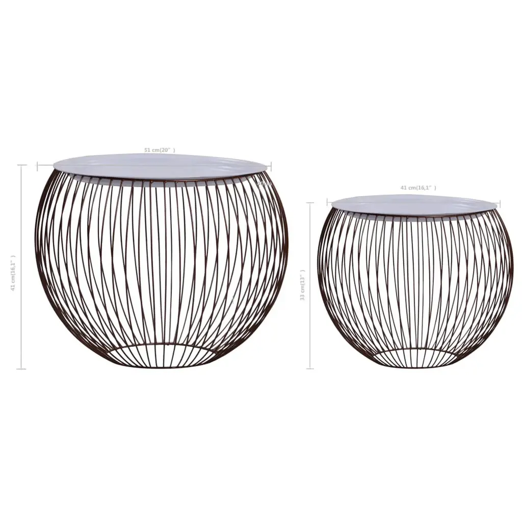 Vidaxl Coffee Table Set Of 2 Gold, White Metal, Mdf Large, Small