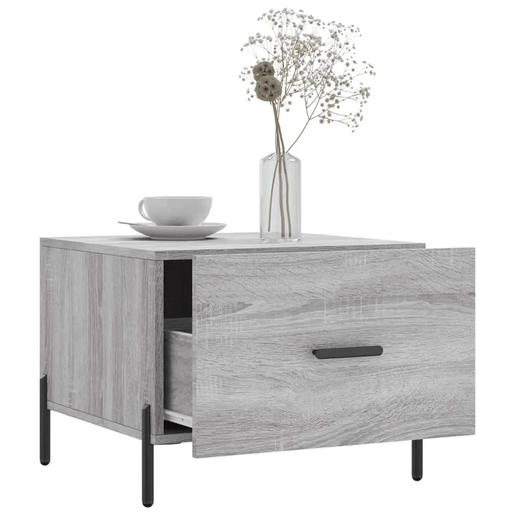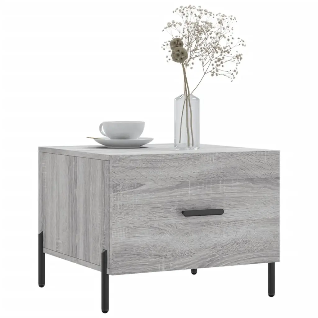 This stylish coffee table set, with its cool grey Sonoma finish, turns any living area into a trendy spot. With a modern design and smooth surface, it’s both a centerpiece and handy for coffee or a casual meetup. Stylish Look: The cool grey finish ups the vibe of any modern space.Good Storage: Comes with a handy drawer for your bits and bobs.Strong Build: Made from sturdy engineered wood and iron.Multi-Purpose: A top-notch fit for living rooms or offices.Compact Dimensions: Measuring 19.7 in in length and width and 15.7 in high, these tables are ideal for smaller spaces, letting you get the most use without crowding the room.
