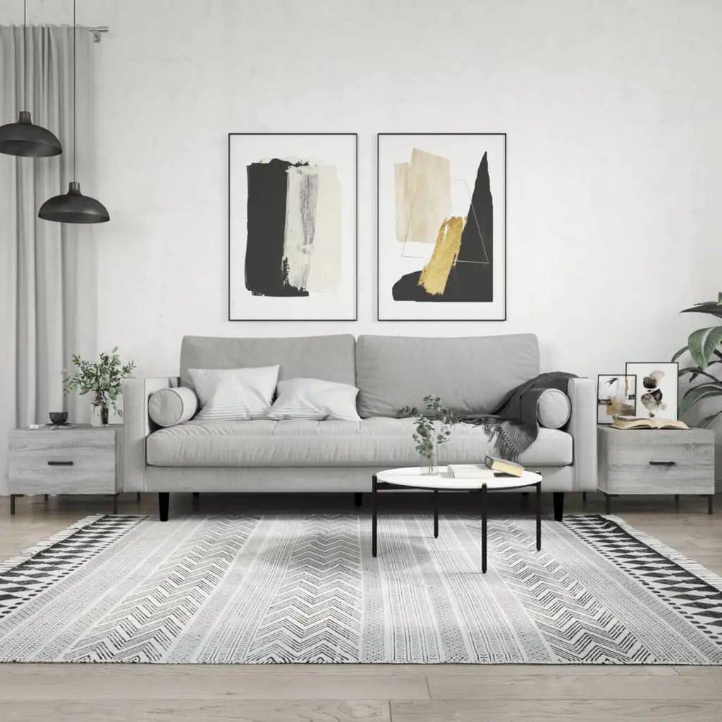 This modern coffee table set features two stylishly crafted tables in a striking grey Sonoma color, making it a fab addition to any trendy living area. With a smart square shape, each piece not only boosts the aesthetic of your room but also works as a handy spot for coffee, books, and knick-knacks—perfect for hosting friends or just chilling at home. Trendy Look: The sleek grey finish and clean lines suit a variety of design vibes. Practical Storage: Comes with a drawer for easy storage, keeping everything tidy. Tough Build: Made from engineered wood and iron, ensuring stability and long usage. Easy Care: Just a quick wipe down with a damp cloth keeps it looking good as new. Multi-Purpose: Perfect for living rooms, bedrooms, or offices, fits loads of different functions.