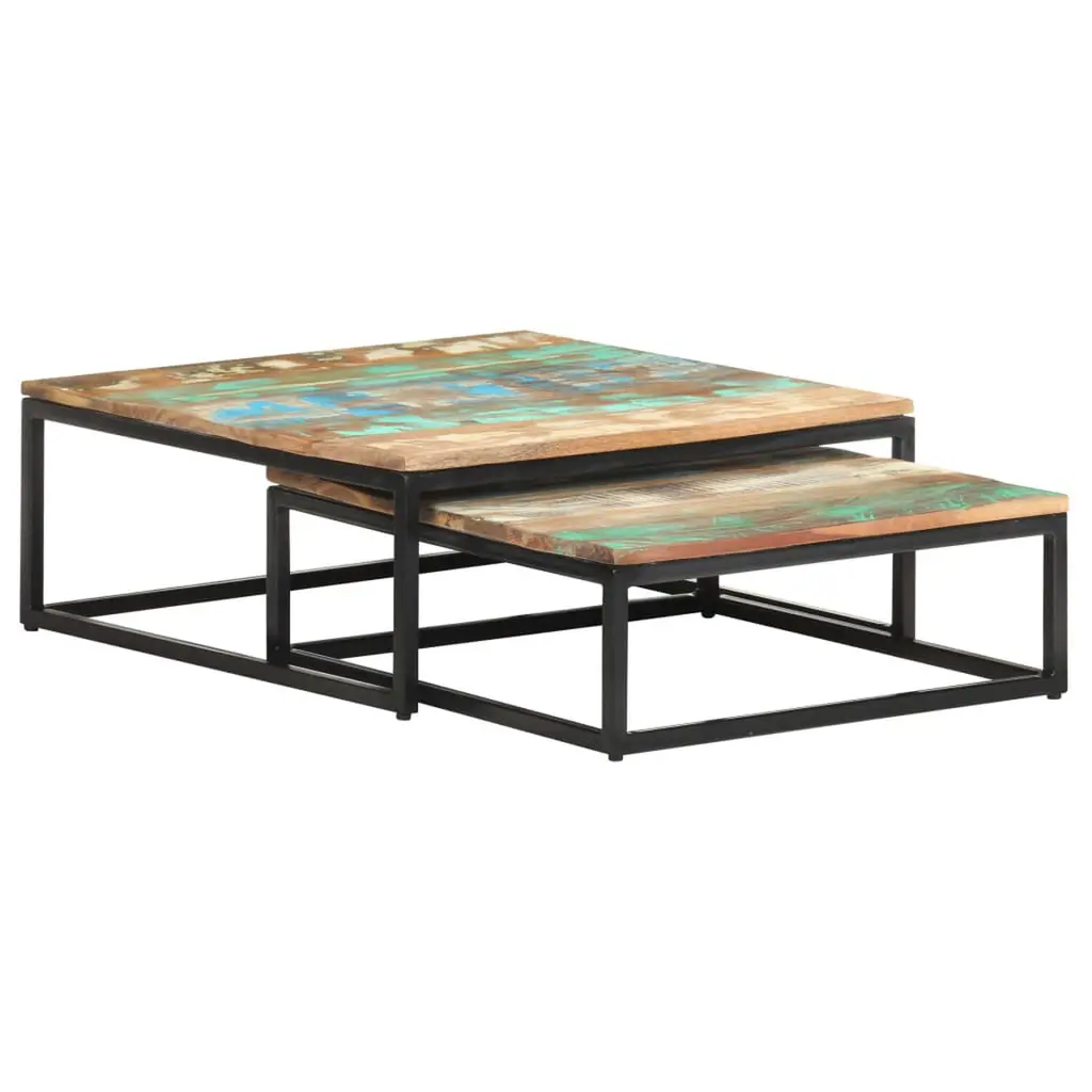 Vidaxl Coffee Table Set Of 2 Multicolor Reclaimed Wood Small