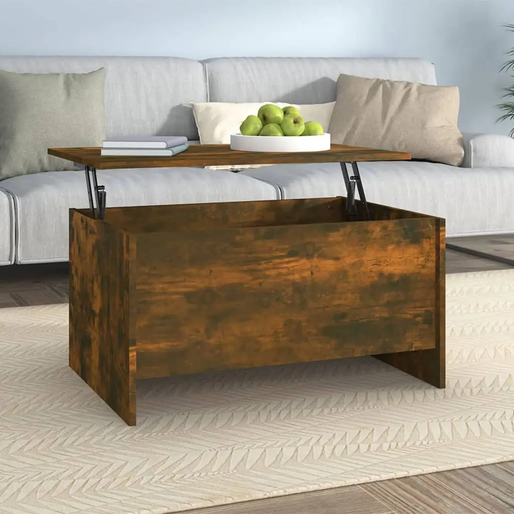 This Lift Top Coffee Table in Smoked Oak is a stylish addition to your living room, mixing style and practicality effortlessly. Its beautiful smoked oak finish gives it a modern vibe, fitting right into various interior styles, while the clever lift-top feature makes it super useful, providing a flexible surface for all sorts of activities. Stylish Aesthetic: The modern design makes this coffee table a great centerpiece for any living room. Its smooth, smoked oak finish adds a touch of class, boosting your space's decor.Versatile Lift Top: The lift-top feature makes it easy to adjust the tabletop height, perfect for dining, working, or enjoying a casual drink—ideal for any occasion.Hidden Storage: The coffee table offers plenty of concealed storage under the lift-top, giving you a handy spot to stash things like books or remotes, keeping your living area tidy.Quality Material: Made from hardy engineered wood, this coffee table is built to stand up to daily use while staying smooth and sleek.Size Perfect for Any Room: At 31.5 x 21.9 x 16.3 in, this coffee table is roomy yet compact enough to fit perfectly in different living room setups, making it ideal for small or large spaces.