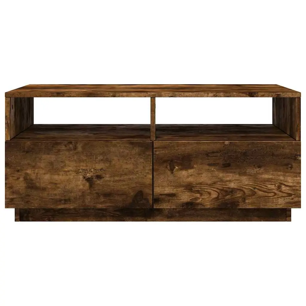 This Smoked Oak Coffee Table is a real standout in any living room, mixing modern vibes with handy features for all lifestyles. Its classy yet subtle design, made from engineered wood and fitted with LED lights, creates a stylish focal point that adds brightness and charm to your space. Integrated RGB LED Lighting: The coffee table features built-in lighting that changes the vibe of your living space. With bright, adjustable colors, you can set the mood for any occasion. The lights are controlled via a remote, so you can change settings from anywhere in the room.Contemporary Design: Its smooth finish and tidy lines make this table a perfect match for modern decor. The subtle smoked oak color enhances its charm, adding warmth while keeping things stylish.Ample Storage Options: Designed for convenience, the table includes two spacious drawers to stash items out of sight. Plus, the open shelves underneath give you room for decor or practical use, keeping your living area neat.Durable Material Construction: Made from top-notch engineered wood, this table is stylish and sturdy. Its moisture-resistant properties mean it stays in good shape, plus it's a breeze to clean—just wipe it down with a damp cloth.Flexible Usage Scenario: Whether you use it for coffee serving or as a handy side table, it fits nicely in your living room, office, or hallway. It's practical and chic, making a great statement in your furnishings.