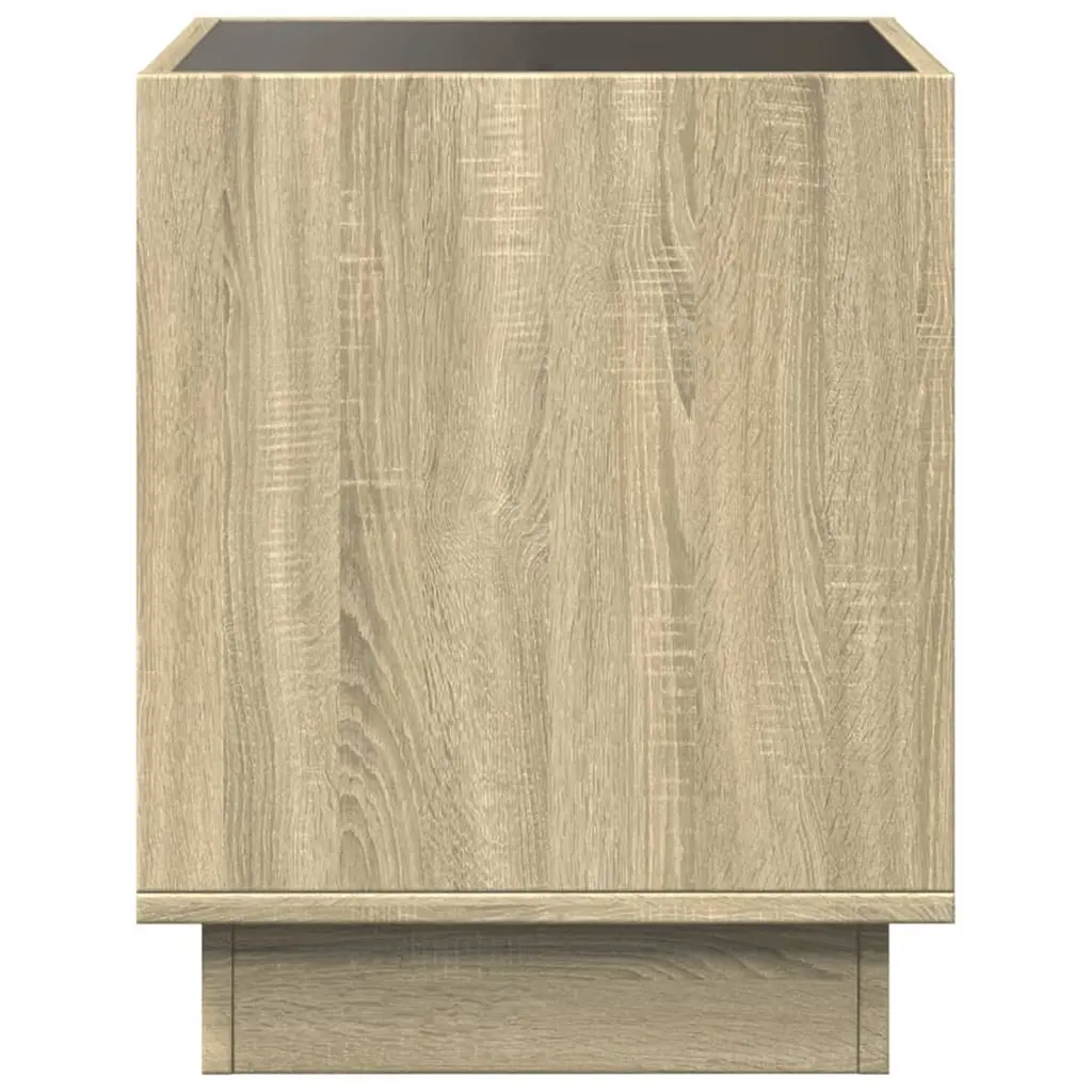 This Sonoma Oak LED Coffee Table is a stylish and modern addition to your living room or bedroom. With its elegant square shape and built-in LED lights, it not only looks fantastic but also provides a convenient space for drinks, books, or decorative items. Built-In Lighting: The RGB LED lights set the mood in your space, allowing you to tweak the vibe to your liking. The ambient glow is perfect for relaxing or entertaining guests.Sleek Modern Design: The matte finish and natural look of the Sonoma oak create a classy aesthetic that fits right in with contemporary home styles. It's a stunning piece that complements all sorts of decor.Multi-functional Use: Ideal for serving coffee or showcasing your favorite items, this table is great for living rooms or bedrooms, bringing a mix of class and practicality.Solid and Reliable: Made from engineered wood, this coffee table is built to last. It can handle up to 88.2 lb, making it perfect for everyday use.Compact Size: Measuring 19.7 x 19.7 x 19.7 in, it’s just right for smaller spaces or as an accent in larger rooms. Easy to fit into different settings while still providing ample surface area.