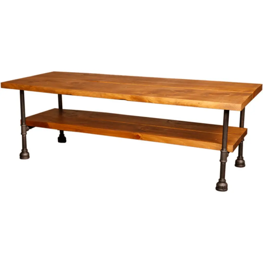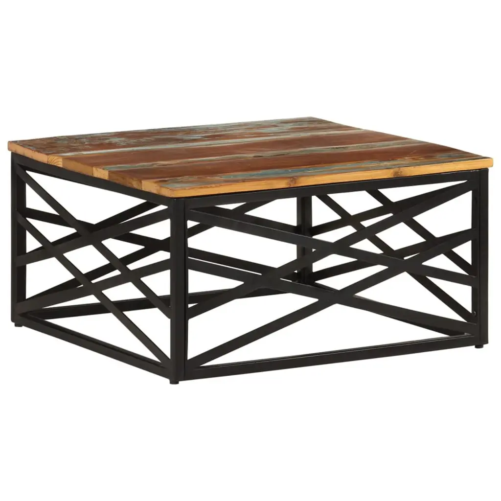 This rustic coffee table is a gorgeous addition to any living space, featuring a unique combo of reclaimed wood and sturdy metal. Its varied hues from reclaimed materials create a beautiful piece that enhances your lounge while being practical too. Stylish Rustic Aesthetic: The table’s multicolored reclaimed wood surface brings natural beauty indoors, adding a warm and welcoming feel to your seating area. No two pieces are alike, delivering a unique charm that fits various decor styles.Sturdy Metal Frame: Made with a powder-coated steel frame, the coffee table is exceptionally stable, holding up weights with ease without losing its style. Its durable build keeps it reliable through daily use, making it an essential piece in your home.Functional Dimensions: At 45.3 inches long, 23.6 inches wide, and 15.7 inches high, the table fits snugly in smaller spaces. It's just right for holding drinks, books, or decor, perfect for casual hangouts or quiet evenings.Craftsmanship Details: Finished with lacquered, polished, and painted surfaces, this coffee table looks great and is easy to maintain. Its smooth texture makes cleaning a breeze, keeping it looking pretty for years.Versatile Usage: Whether serving coffee, displaying books, or showcasing decorative items, this table adapts to your needs with ease. Its rustic charm pairs beautifully with both modern and traditional interiors, enhancing your living space while staying practical.
