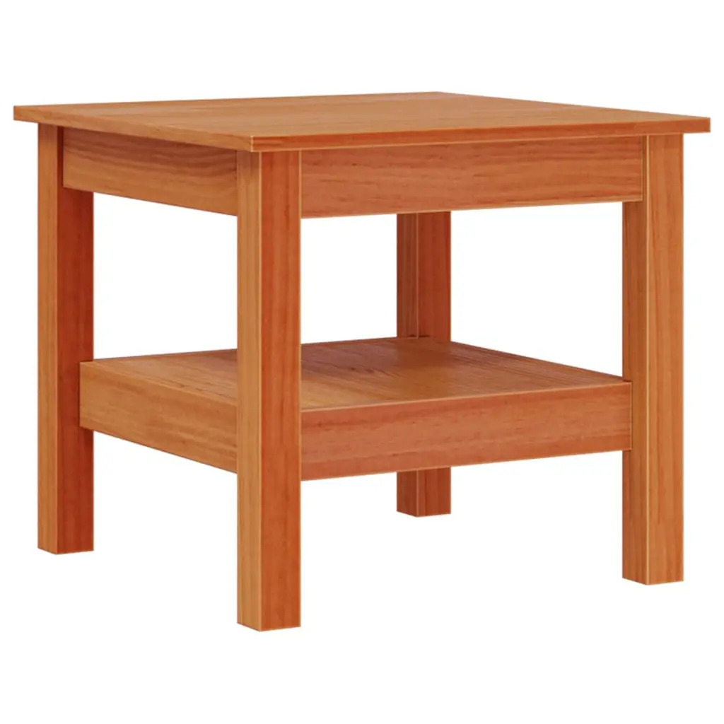This coffee table is a fantastic example of modern craftsmanship, perfect for sprucing up any living space. With its sleek, wax brown finish and solid pine wood build, it's not just functional but also a stylish highlight in your living room or hallway. Beautiful Finish: The waxed surface not only protects the wood but also highlights its natural beauty, making this table a lovely addition to any space. Its smooth texture invites you to touch while showcasing the craftsmanship of solid pine wood. Functional Design: With its square shape and spacious surface, this coffee table is perfect for serving drinks, displaying books, and hosting decorative items. It marries functionality with style, making it easy to use during gatherings or chill evenings. Optimal Size: At 17.7 in wide and long, and 15.7 in high, this coffee table fits perfectly into small spaces. It offers versatility without taking up too much floor space, making it a great choice for apartments or cozy rooms. Durable Materials: Built from solid pine wood, this table can withstand daily use and stand the test of time. Its sturdy legs give it stability while adding rustic charm to the modern design. Easy Assembly: Comes with all the hardware and instructions you need, this coffee table can be quickly put together by one person with just a screwdriver, so you can start enjoying your new furniture in no time.