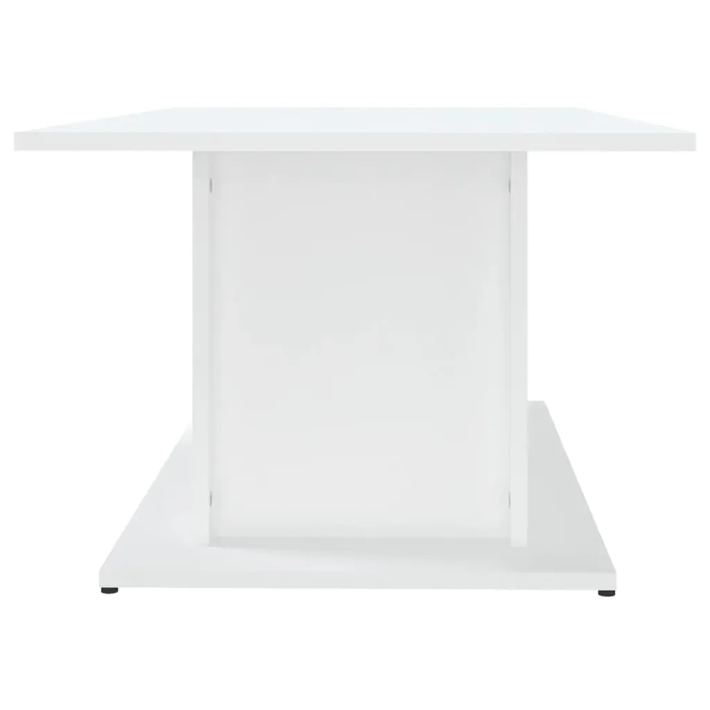 This coffee table is a fab focal point for your lounge, bringing a modern touch with its sleek white finish that goes with any decor. Its rectangular shape and smooth top create a classy vibe, perfect for serving up coffee or showing off your favorite decorative bits. It fits right in, whether you’re having a laid-back get-together or a fancy gathering. Contemporary Style: This modern design fits right in with current decor, enhancing the look of your space. Show off your unique style.Easy Maintenance: Made from engineered wood, the top not only resists scratches but is also a breeze to wipe clean, keeping it looking shiny all the time.Functional Dimensions: At 40.2 in long and 21.9 in wide, this coffee table gives you room for drinks, books, and remotes without taking over the room.Sturdy Build: Its two square legs provide great stability, so you can load it up while keeping its trendy look.Indoor Use: Perfect for indoors, this table is a robust and stylish addition to your living room setup.