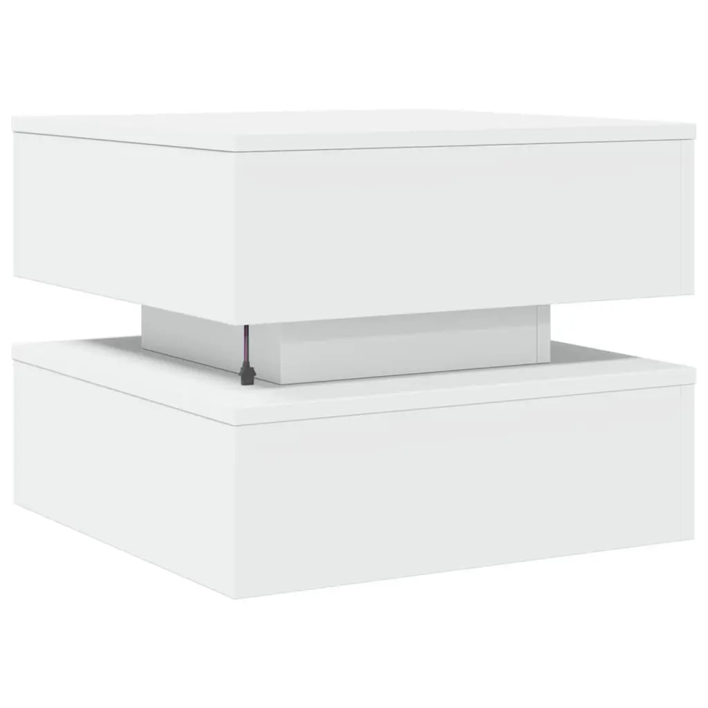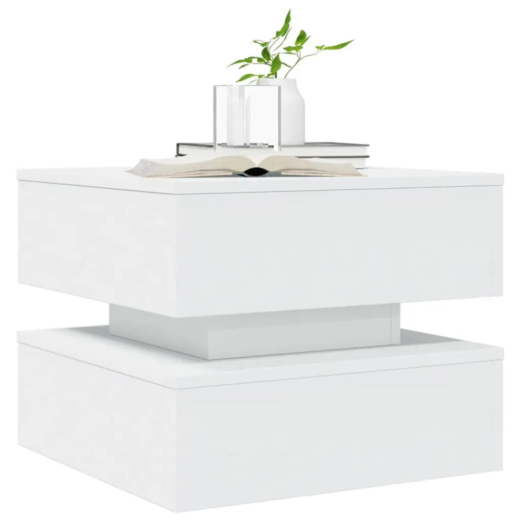 This Coffee Table gives your living space a modern edge while offering a cozy spot for coffee or snacks. With a sleek white finish in engineered wood, it fits perfectly in any room, making it a fab centerpiece for your lounge or living area. Built-In LED Lighting: The RGB LED lights let you play with different settings to set the mood just right any time of day. Contemporary Style: The smooth, matte white finish and clean lines make this table a perfect pick for modern interiors, fitting into various styles. Ideal for Multi-Purpose Use: Works as a coffee table, end table, or accent table, perfect for entertaining guests or relaxing at home. Functionality with Storage: The handy standard drawer keeps your space tidy, stowing away essentials while keeping them close by. Quality Construction: Made from engineered wood, this table holds up to 132.3 lb, ensuring durability while being easy to move around.