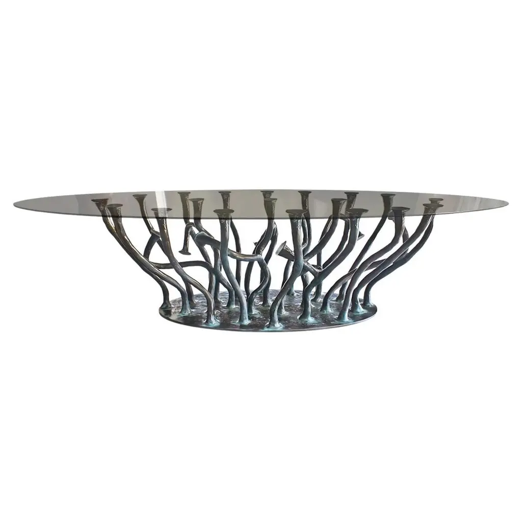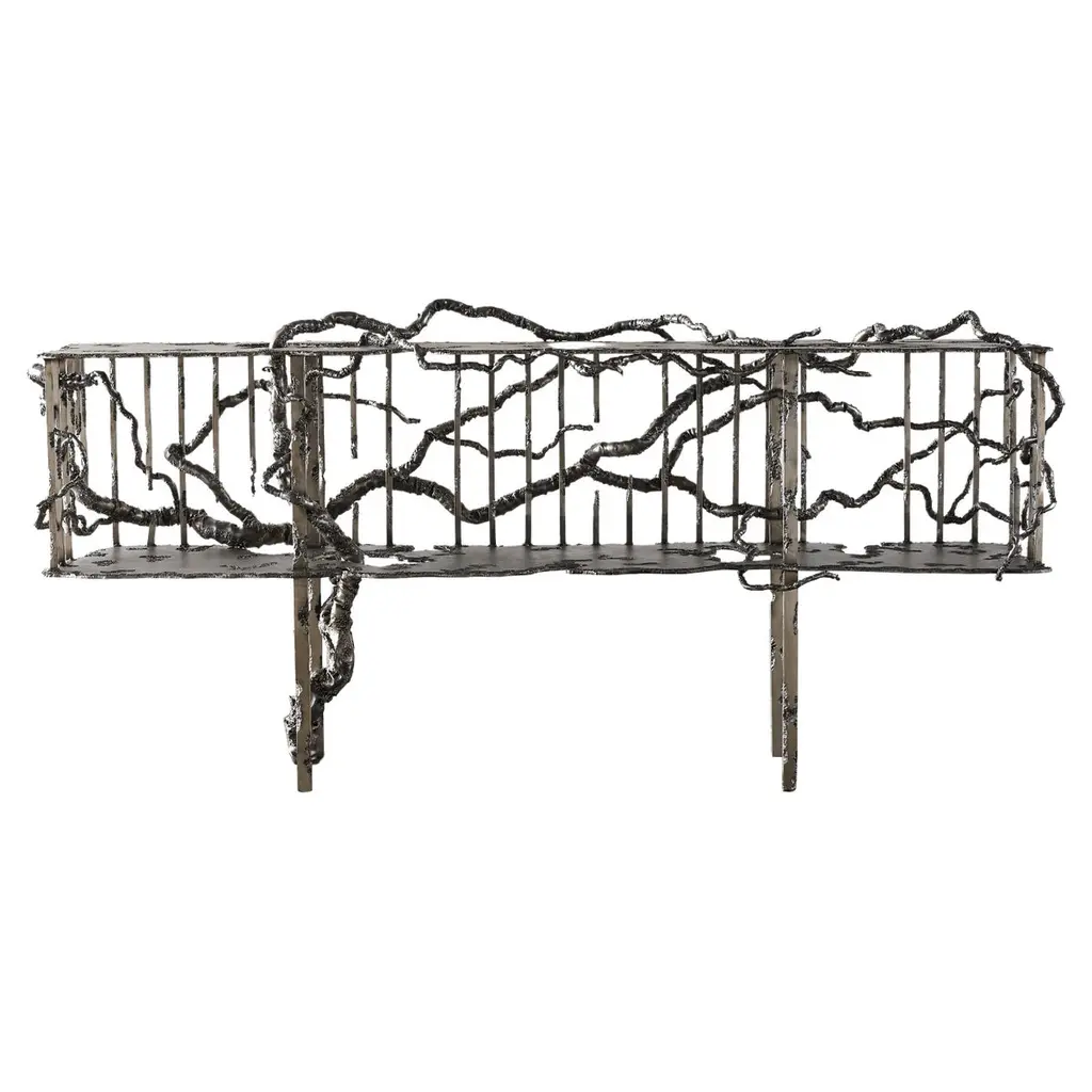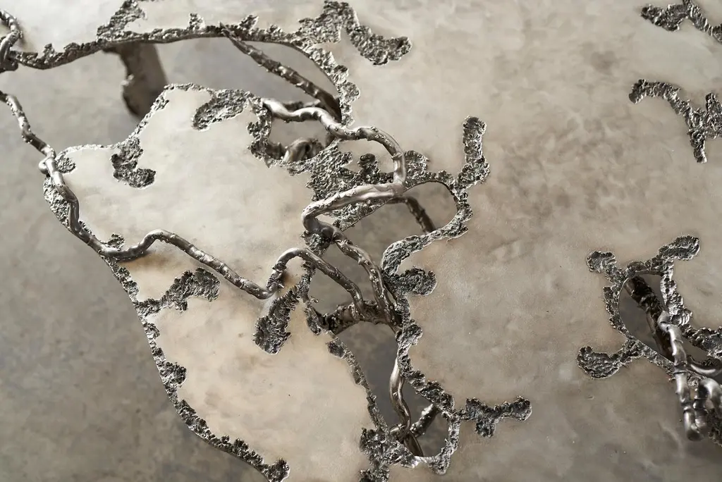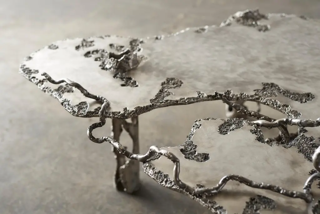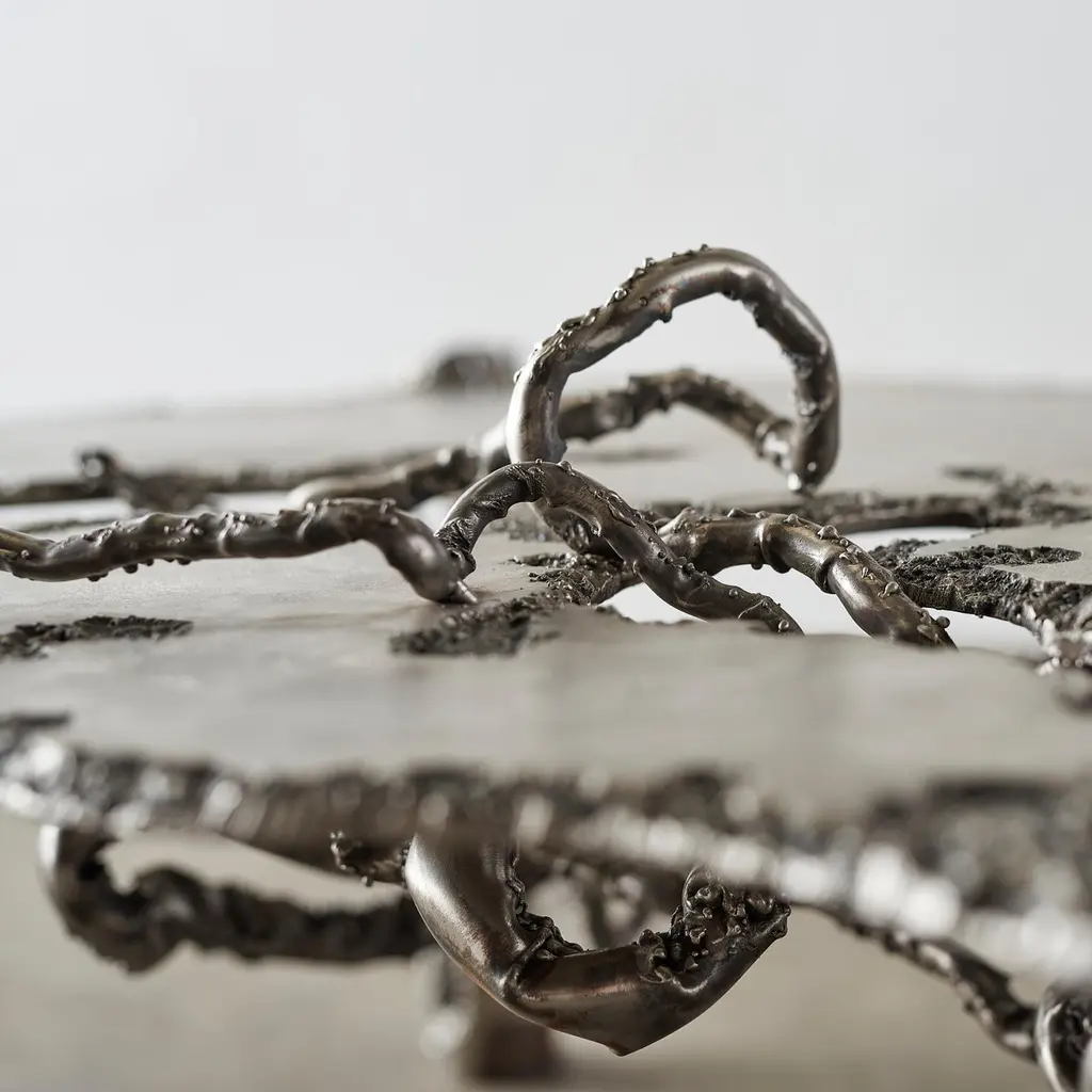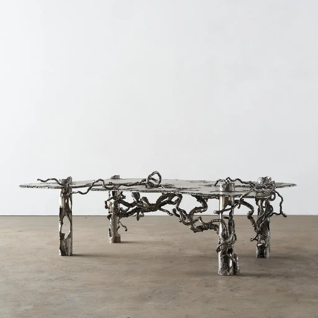 Vines Coffee Table by Michael GittingsOne of a KindDimensions: D 80 x W 110 x H 47 cmMaterials: Stainless steel.Michael GittingsMelbourne based designer Michael Gittings aims to Challenge pre-conceptions around furniture, creating contemporary, yet unconventional pieces.Utilizing industrial processes Gittings welds, weaves, grinds, pours, and grows metal into various functional forms.At the heart of Michael’s work is a desire to expose the raw materials for what they are. Michael’s design ethos shines through in the handmade, unique quality of each piece.Pushing the boundaries of furniture design, Michael’s work balances both artistic and functional sensibilities.