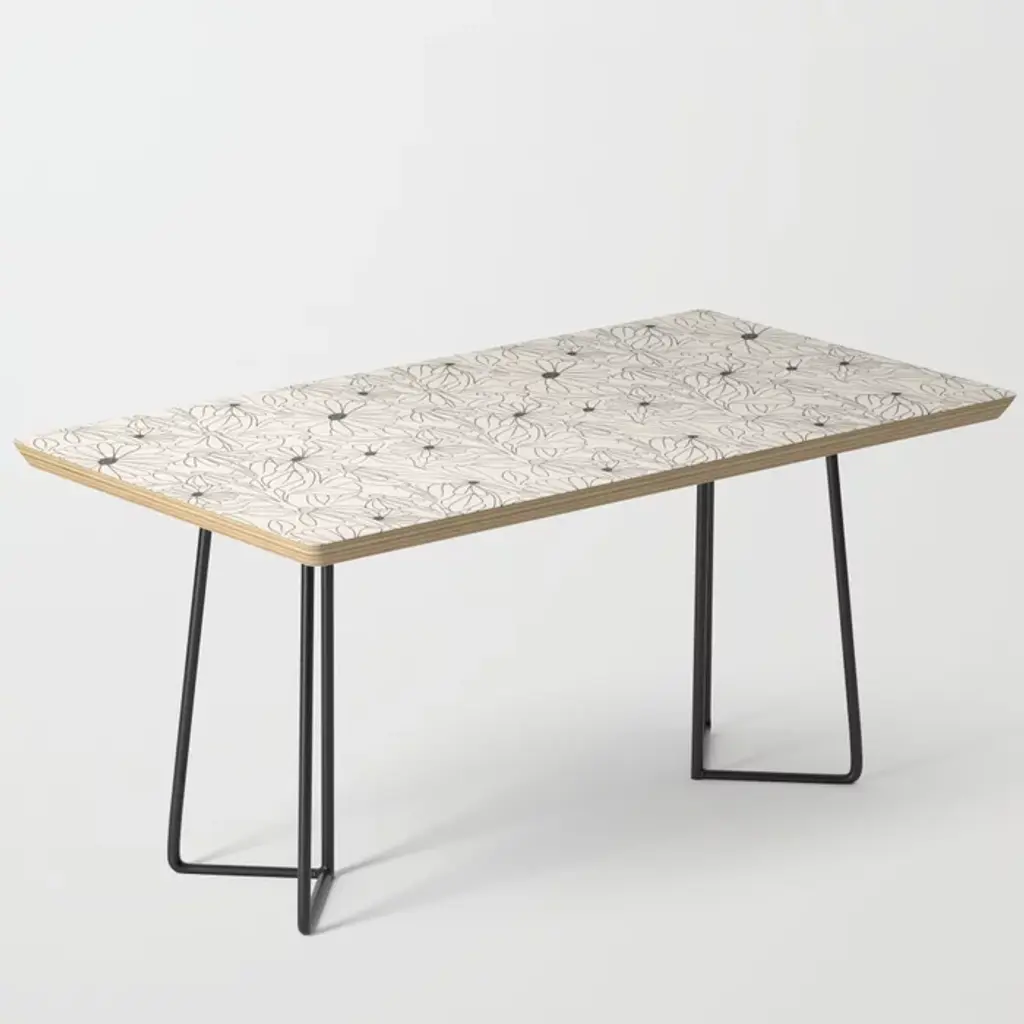 35.75" x 17.75" x 17" (H)Baltic birch table top with beveled edgeHigh quality print with satin finishSteel legs available in black or goldAssembly requiredEvery order is made just for youSHIPPING: Items are made to order and typically ship within 3-4 business days. Click here for more information about delivery options.Furniture sales are final. Click here for more information on returns.