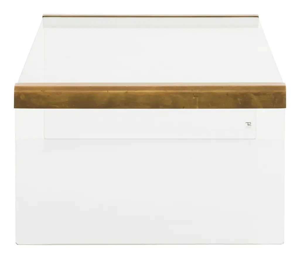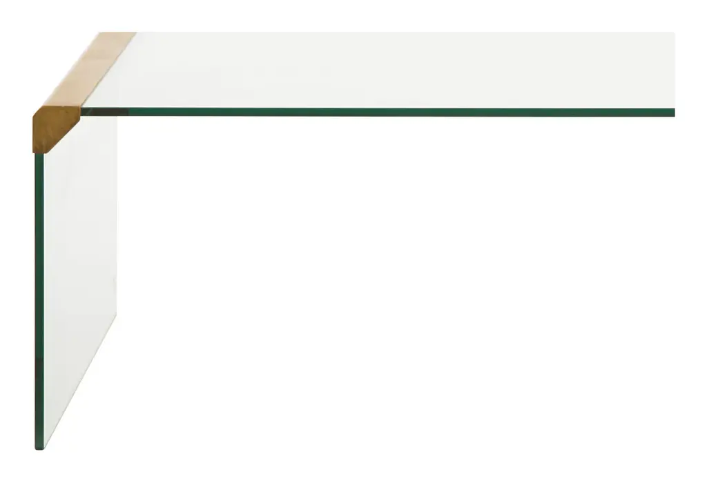•glass with patinaed brass corner detail •20th century •italy Dimensions•46.25"W x 23.75"D x 14"H