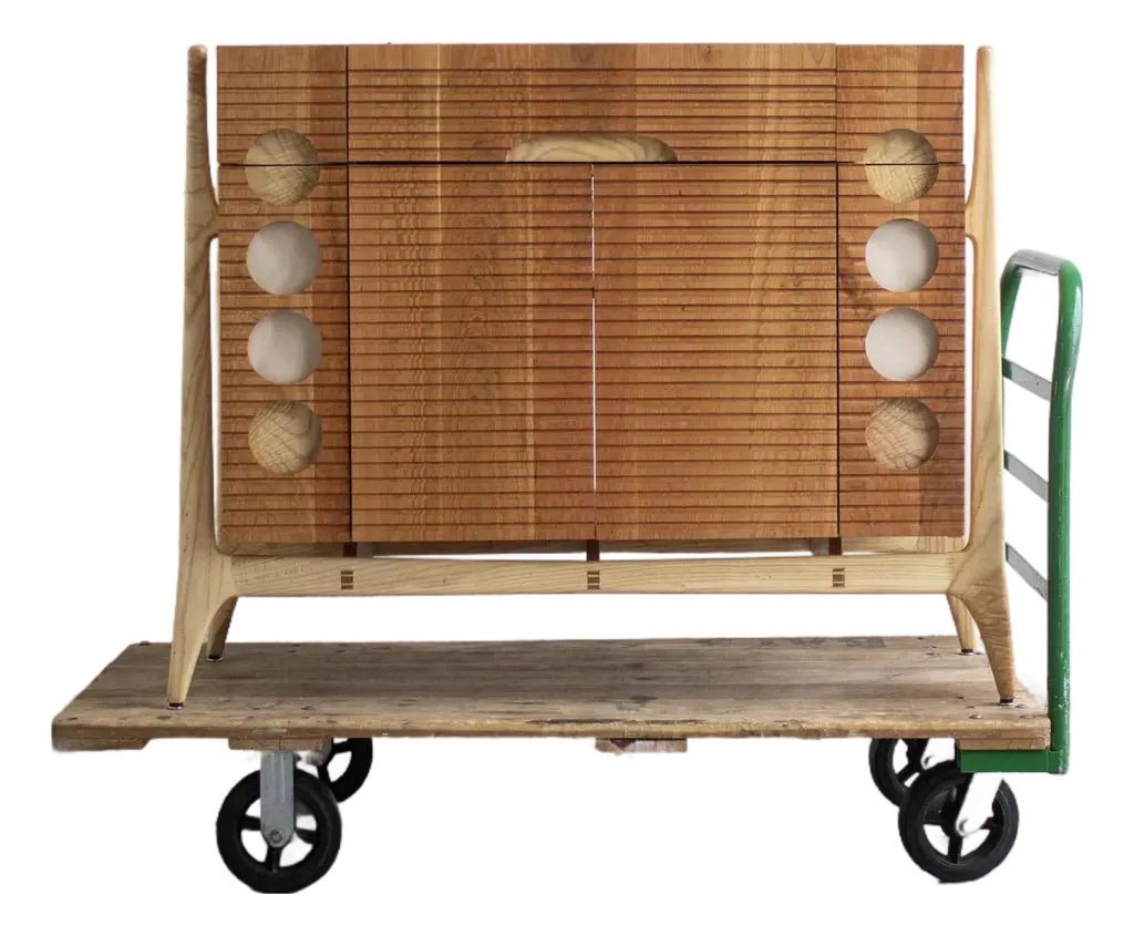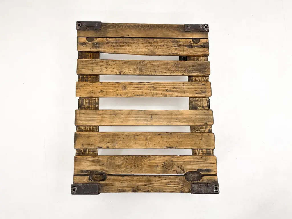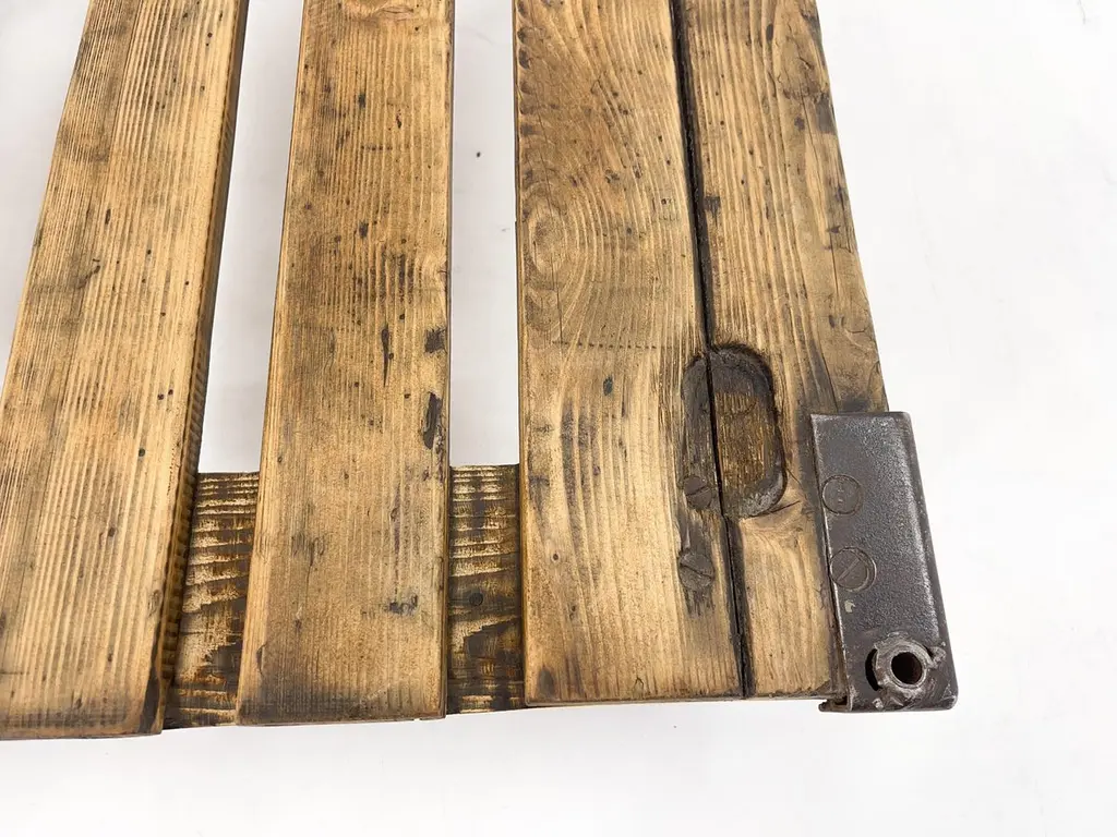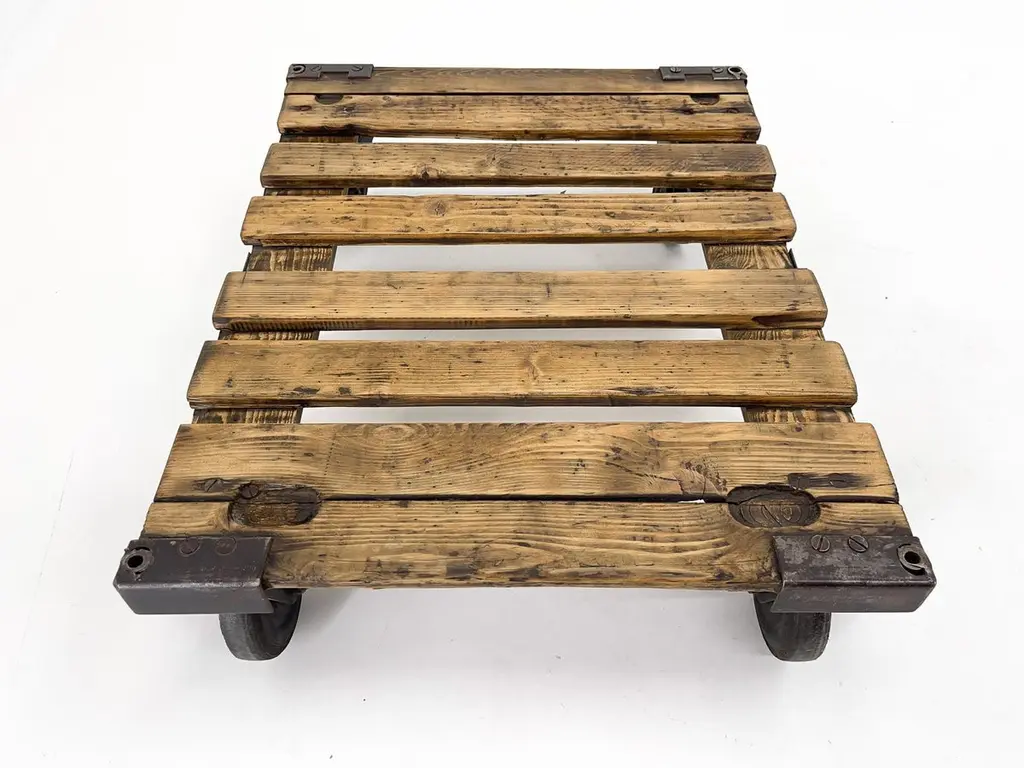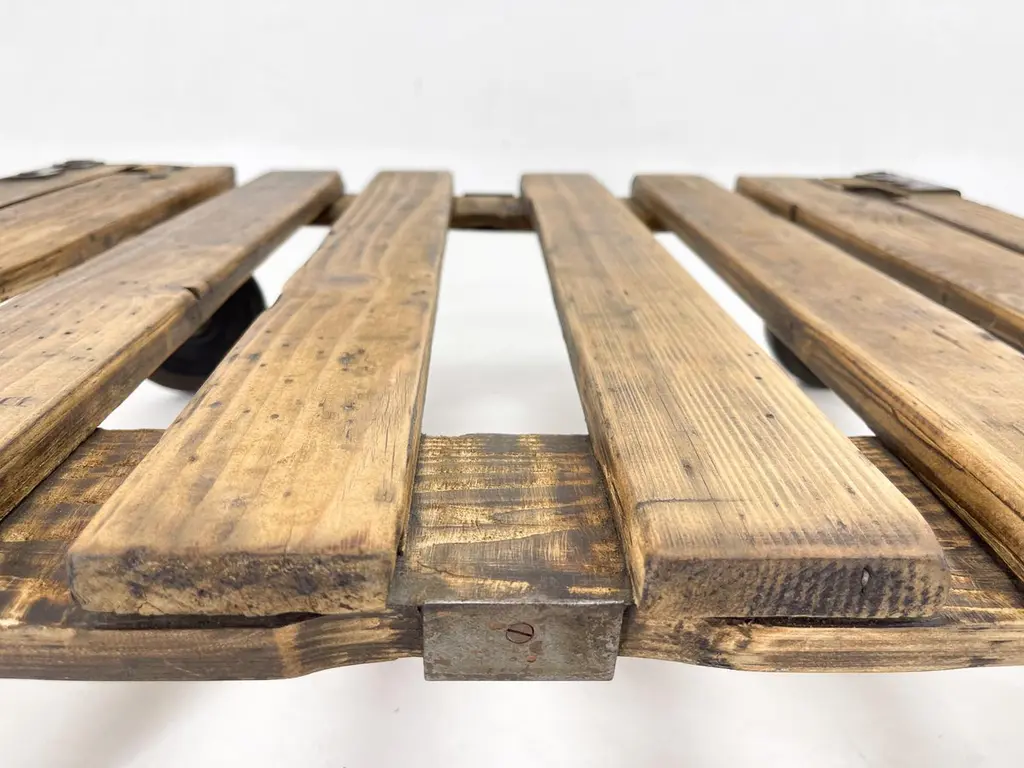 Vintage Industrial Iron & Wood Coffee Table On Wheels