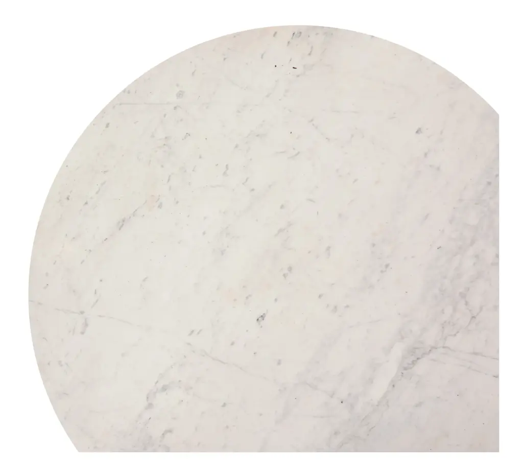 •original white marble top •painted iron frame •patinaed finish •20th century •belgium Dimensions• 41.25" diameter x 18"H