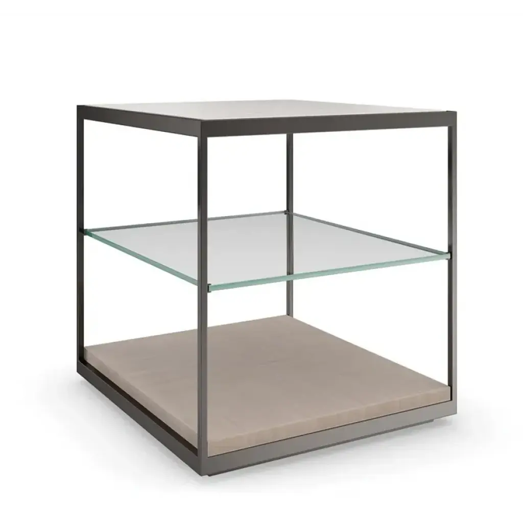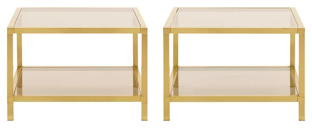 •up to 2 available (pending availability) •up to 2 available (pending availability) • patinaed brass frame •original smoked glass shelves •mid 20th century •france Dimensions•23.75"W x 23.75"D x 15.75"H •up to 2 available (pending availability) •up to 2 available (pending availability) •up to 2 available (pending availability)