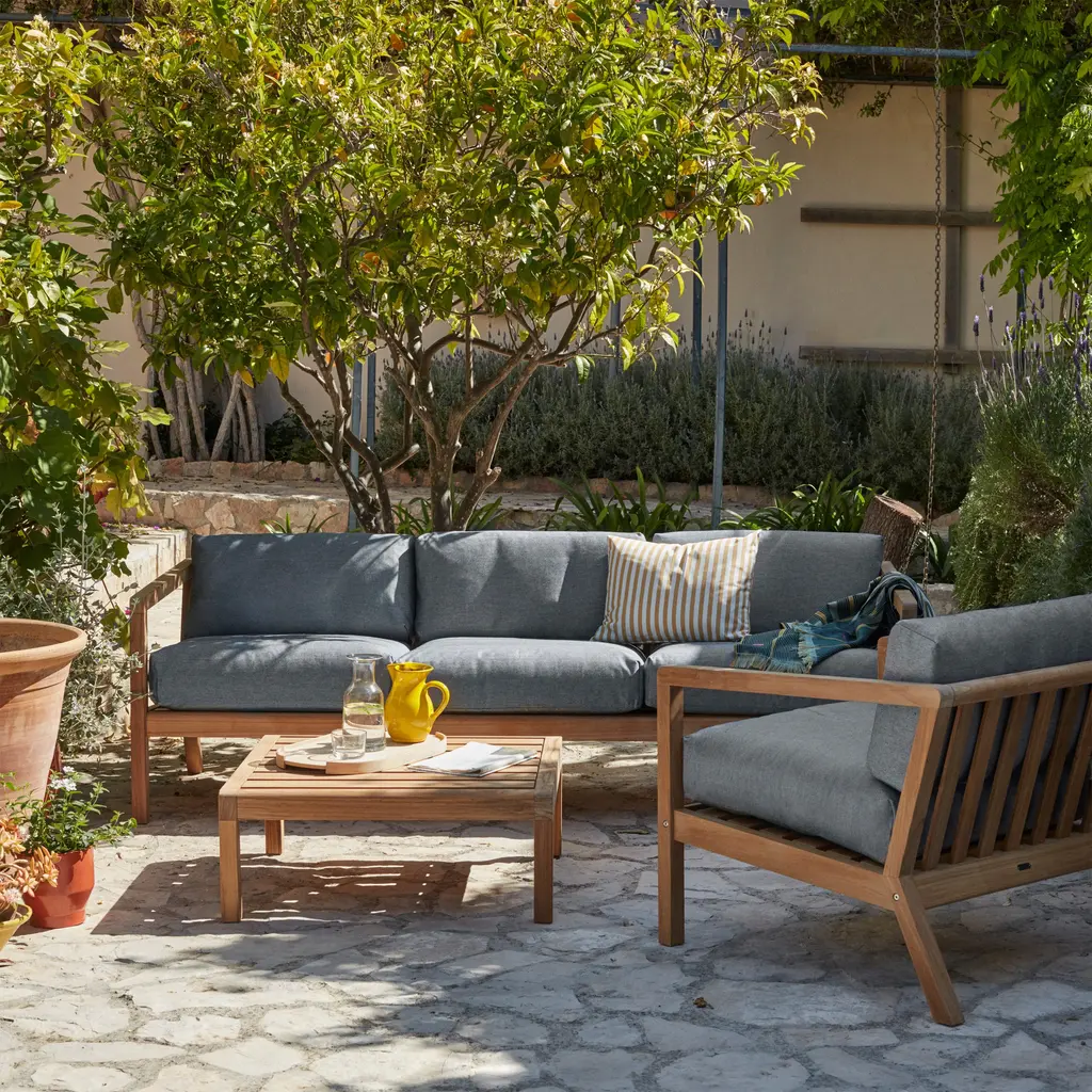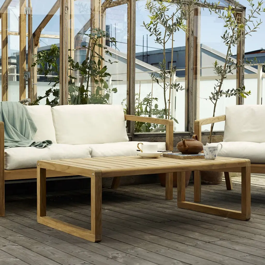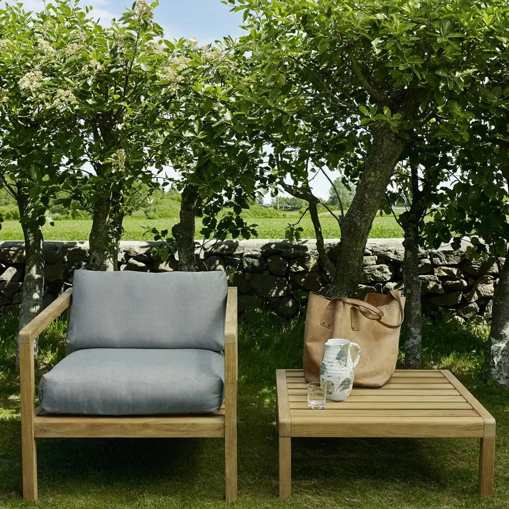 Continuing the Virkelyst collection’s elevated take on outdoor furnishings, this coffee table has impeccable style. With a base that delineates negative space in its double-frame configuration, the addition of a slatted tabletop is a crisp counterpart. Finely crafted in solid teak, the table from Scandinavian design studio Says Who has a timeless modernist appeal.