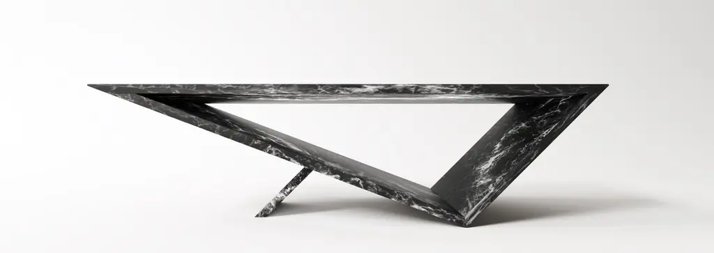 In this vast, mysterious universe we are but a fleeting moment.A brief flicker in the infinite flame.Time and space- dancing together in a cosmic waltz. An eternal rhythm of the universe.The inspiration for the Viva Table collection comes from the power, simplicity, and elegance of the triangle.This is an ongoing series exploring the dynamics of balance, weight, gravity, mass, and how this dynamic is expressed utilizing various materials.A powerful Minimalist gem with a dynamic presence. This black soapstone coffee table has a honed finish. A powerful statement piece!Dimensions:66” long x 25” wide x 18” high. –size modifications availableThis table can be fabricated in any available natural stoneNew and made to order. Lead time is 12-16 weeks. Signed and dated on underside.